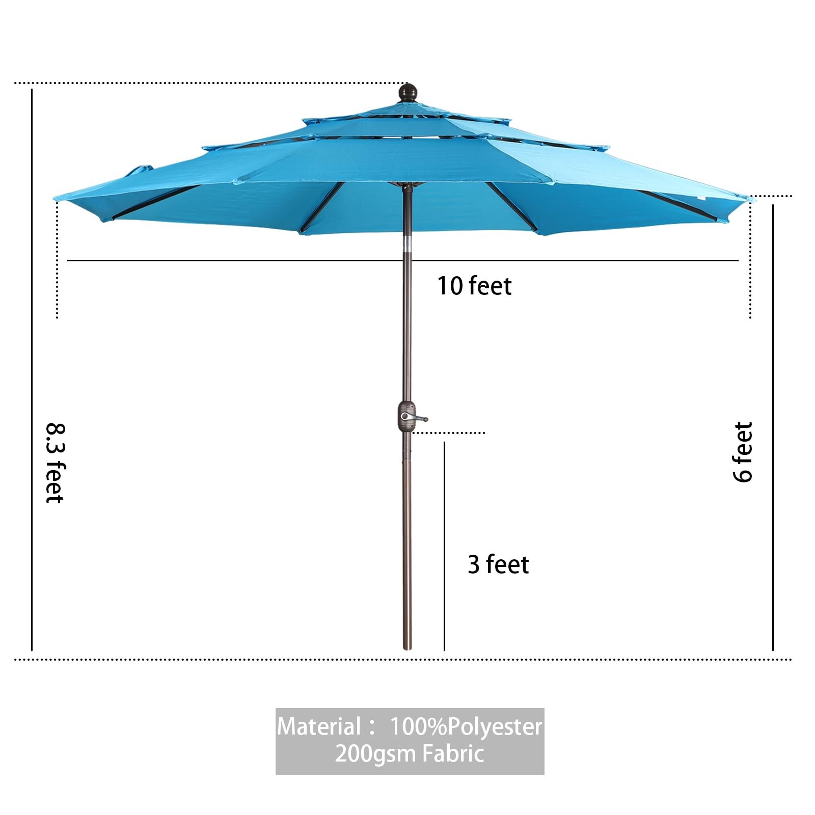10 Ft 3-Layer Patio Umbrella, 3-Tier Outdoor Market Umbrella with Tilt Button