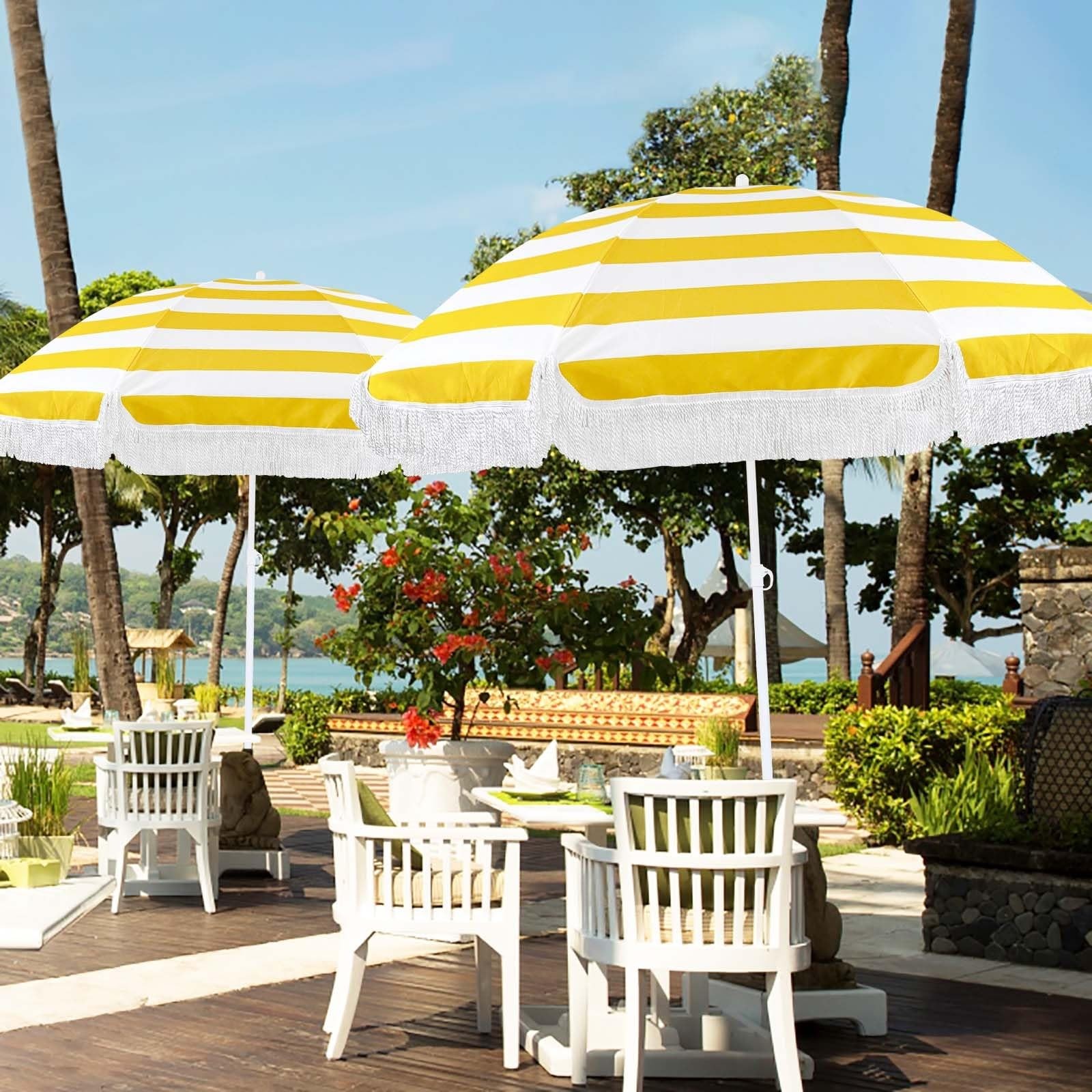 5.9ft Outdoor Tassel Umbrella, Portable Beach Umbrella, Market Patio Table