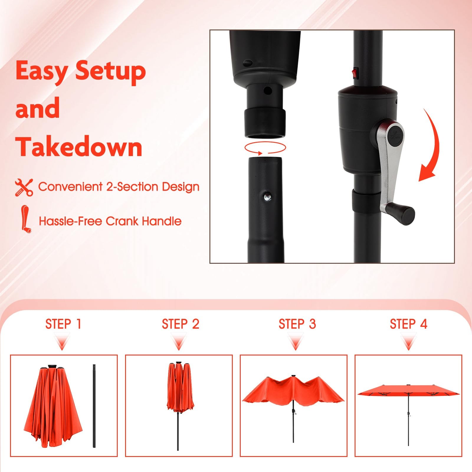 13 FT Solar LED Patio Umbrella, Double-Sided Outdoor Table Market Umbrella