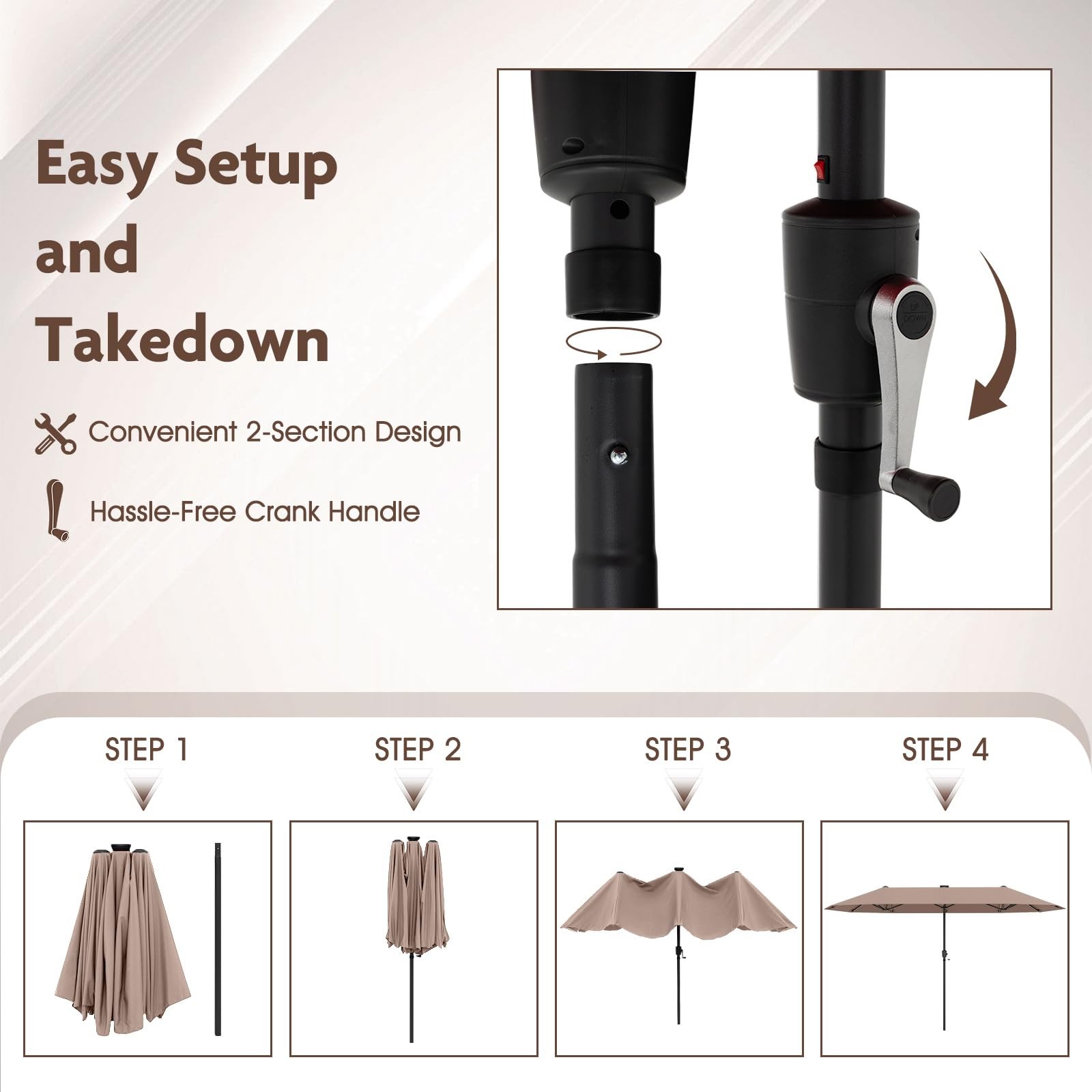 как выглядит 13 FT Large Patio Umbrella w/LED Solar Lights, Crank Handle, 12 Heavy-Duty Ribs фото