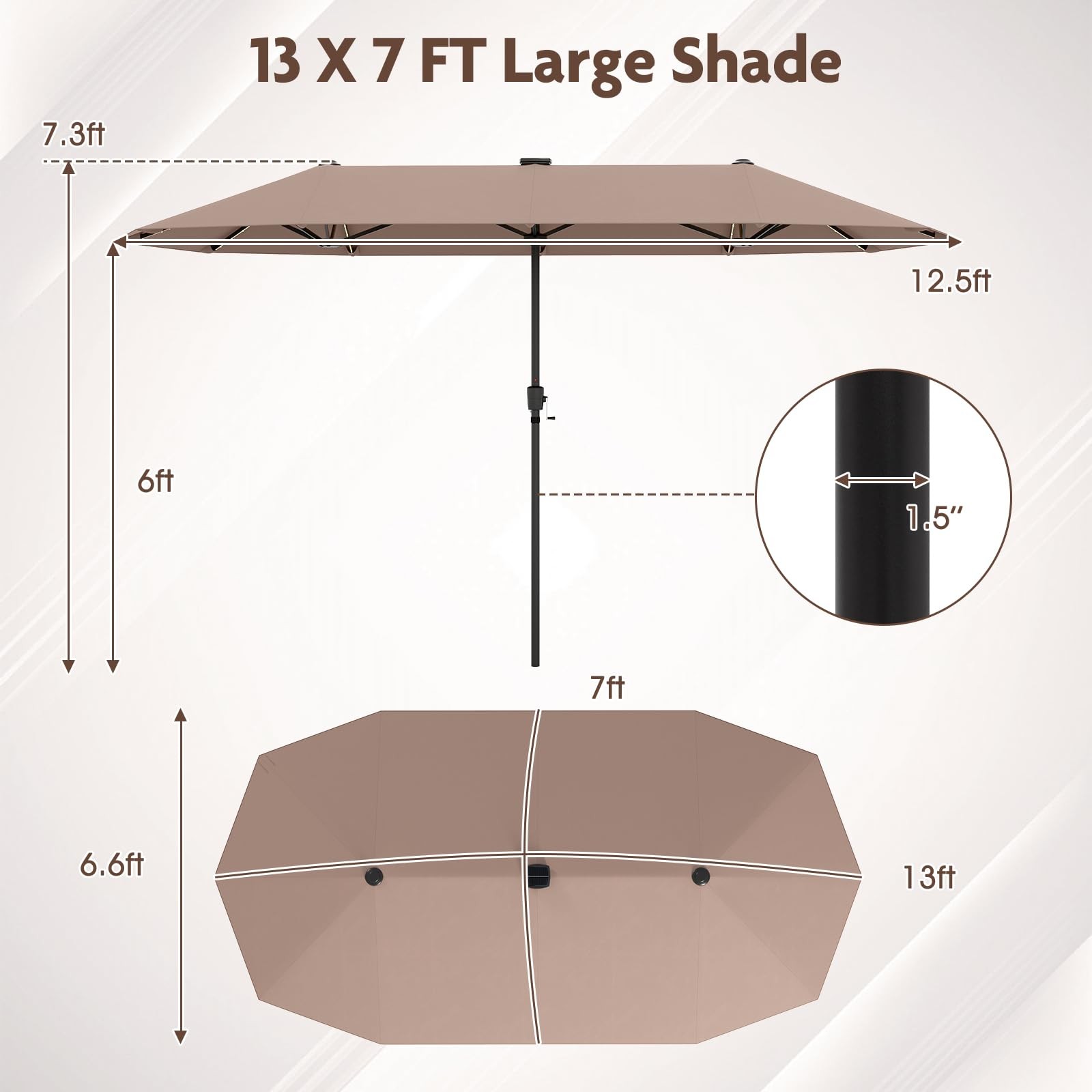 13 FT Large Patio Umbrella w/LED Solar Lights, Crank Handle, 12 Heavy-Duty Ribs
