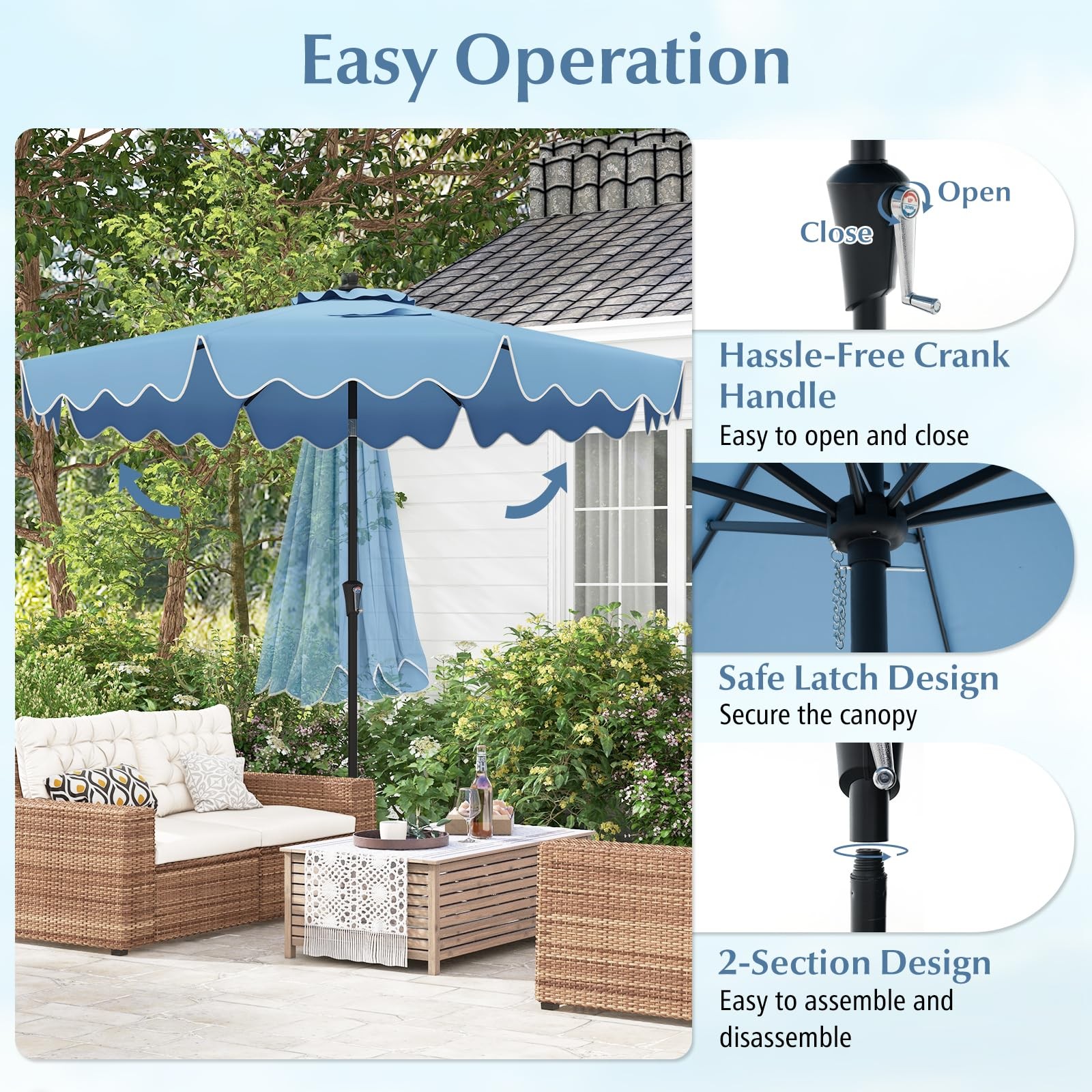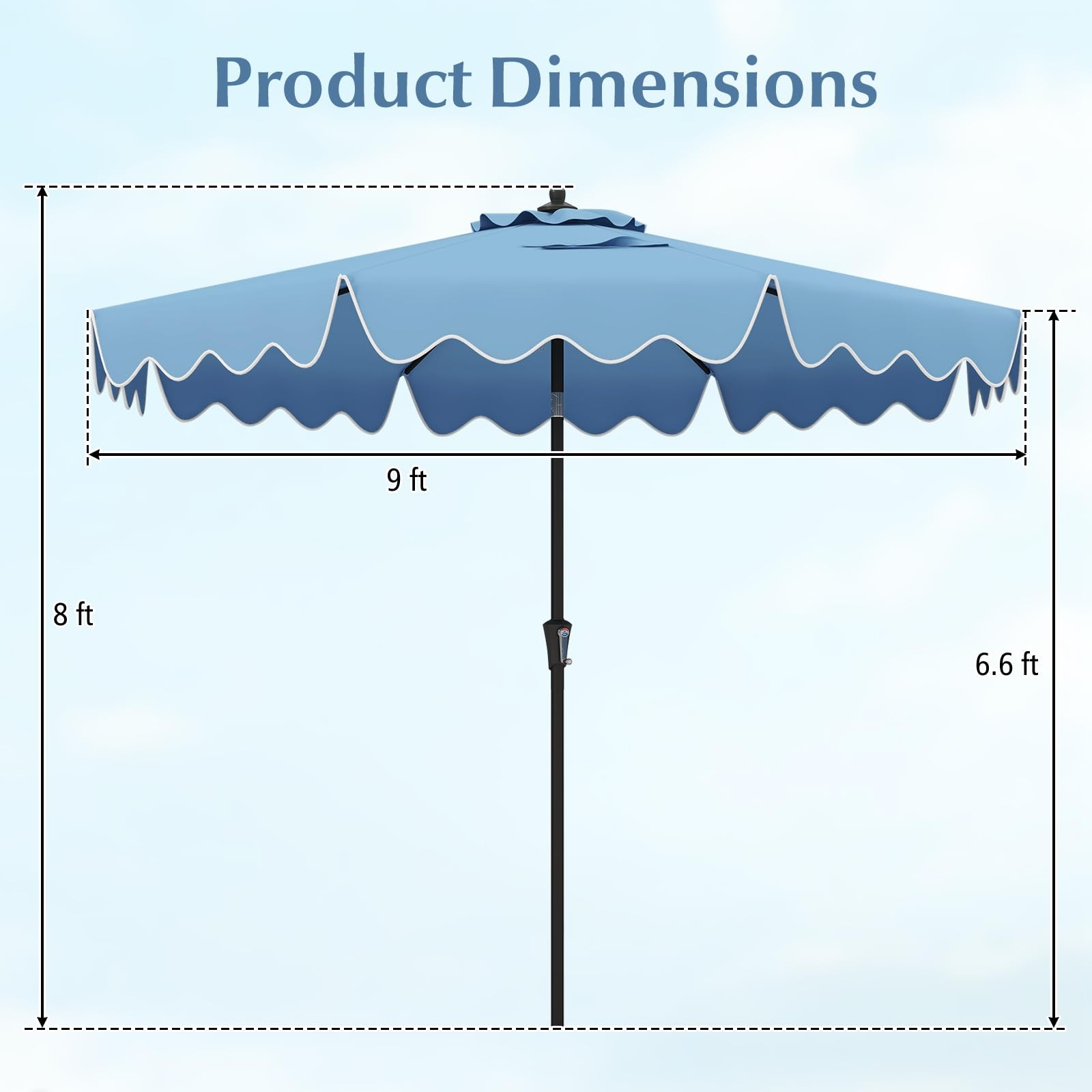 9Ft Patio Umbrella with Crank, 2-Tier Outdoor Umbrella with Push Button Tilt