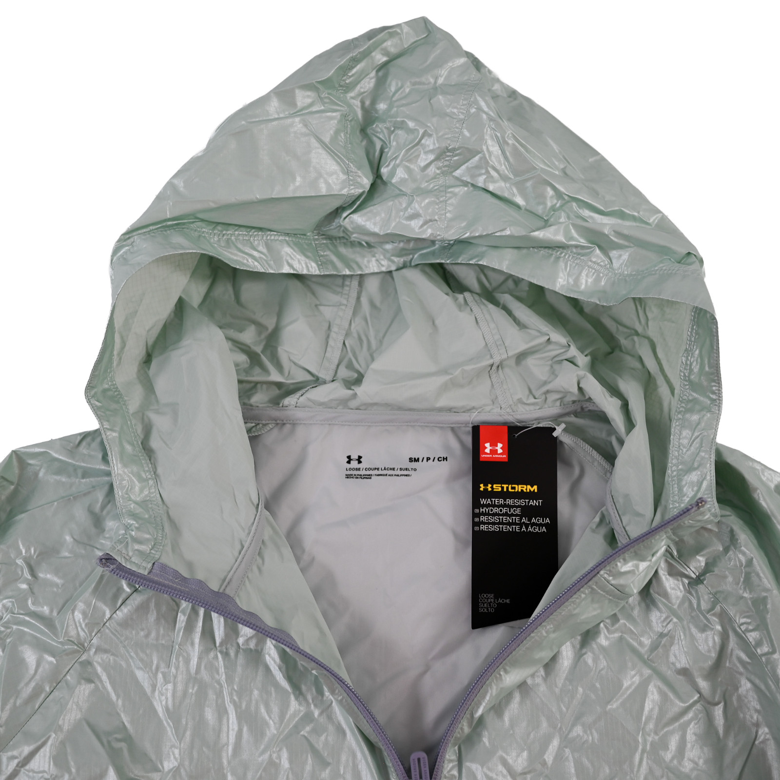 Under Armour Women's Small UA Storm Metallic Woven FZ Hooded Jacket Green Blue