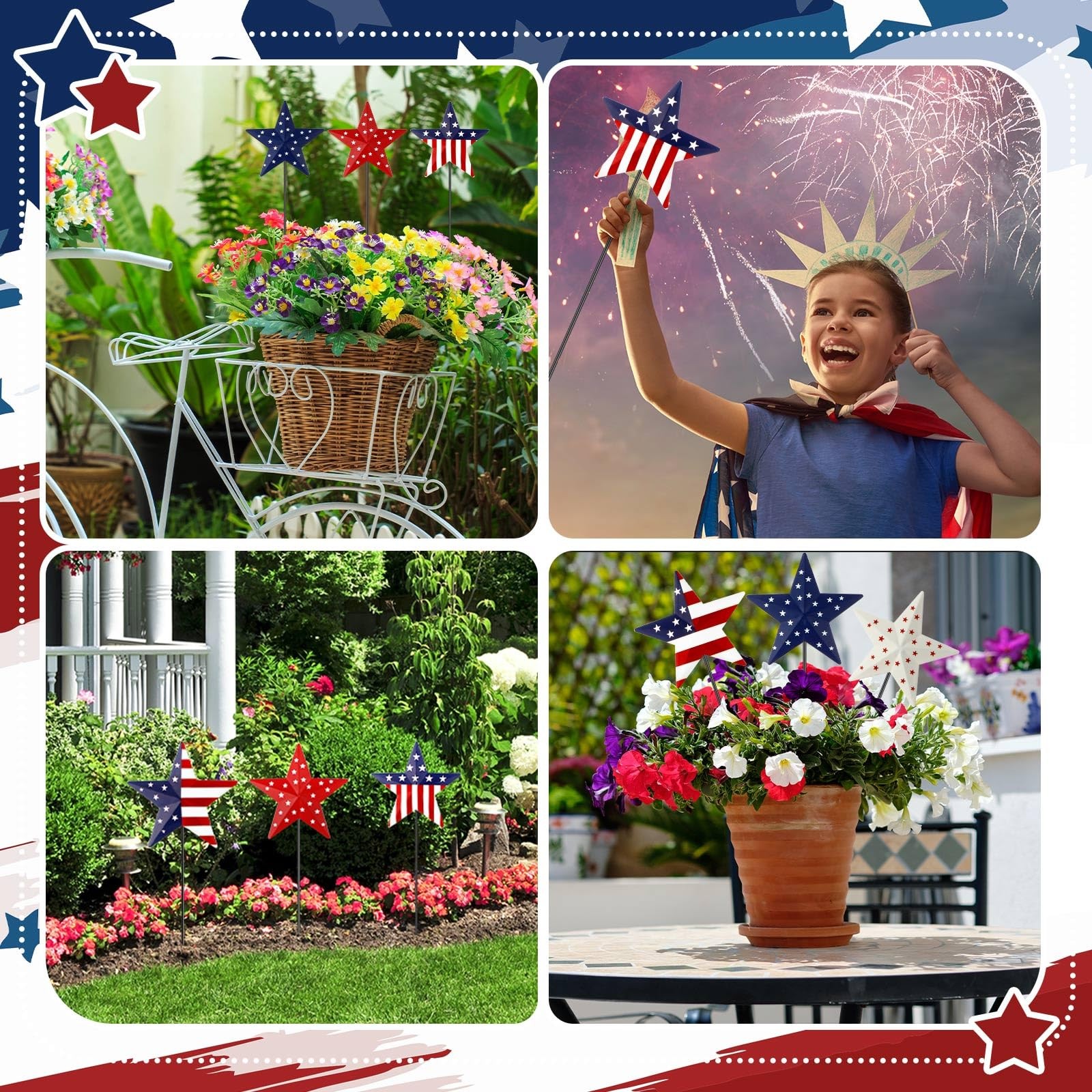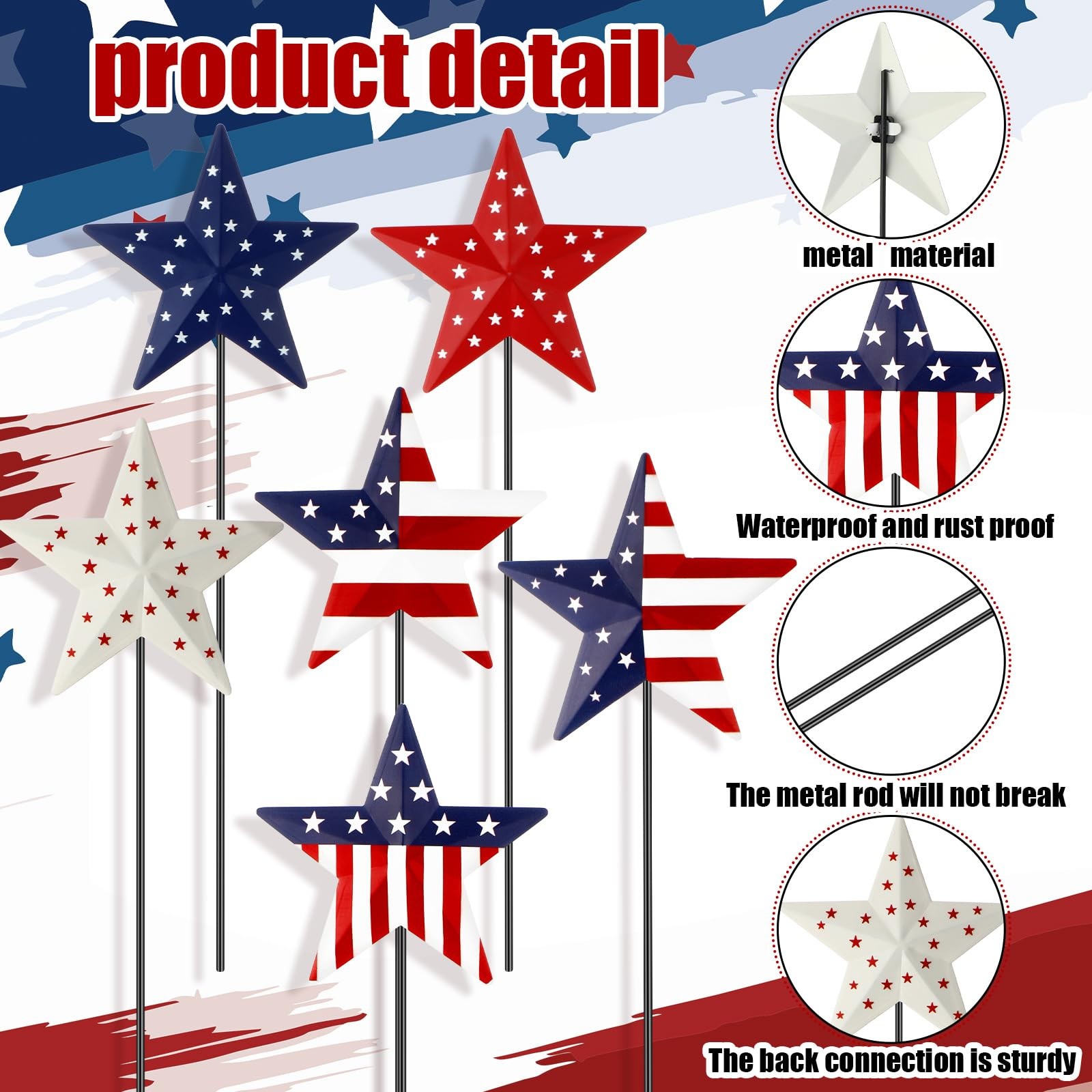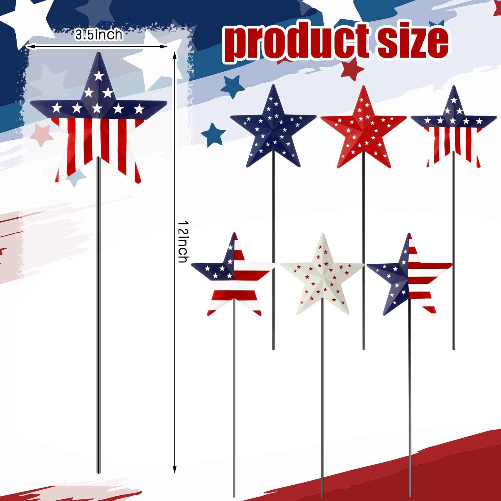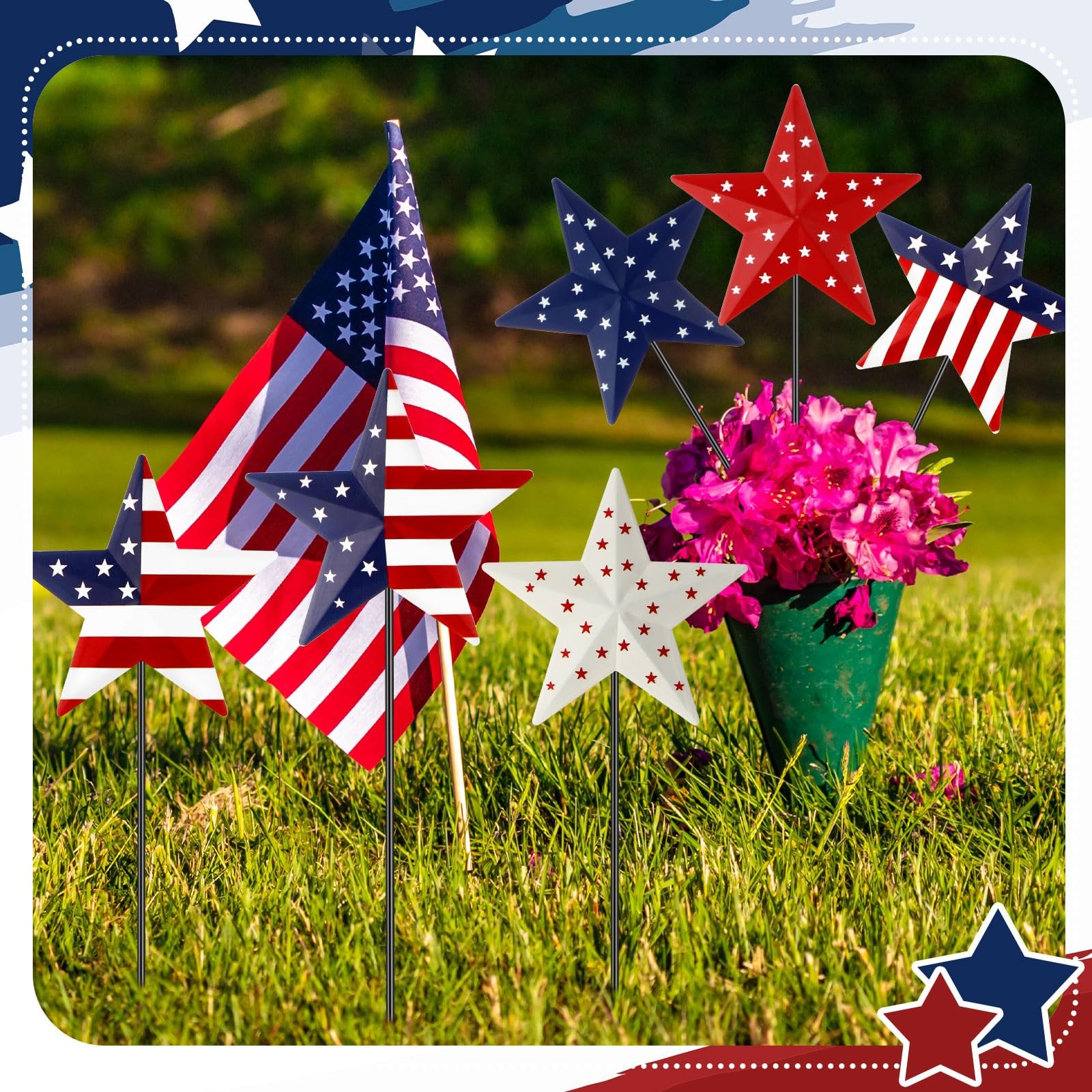 Pickmesh 6 Pcs 12 H Patriotic Metal Yard Sign Star Red, White, and Blue