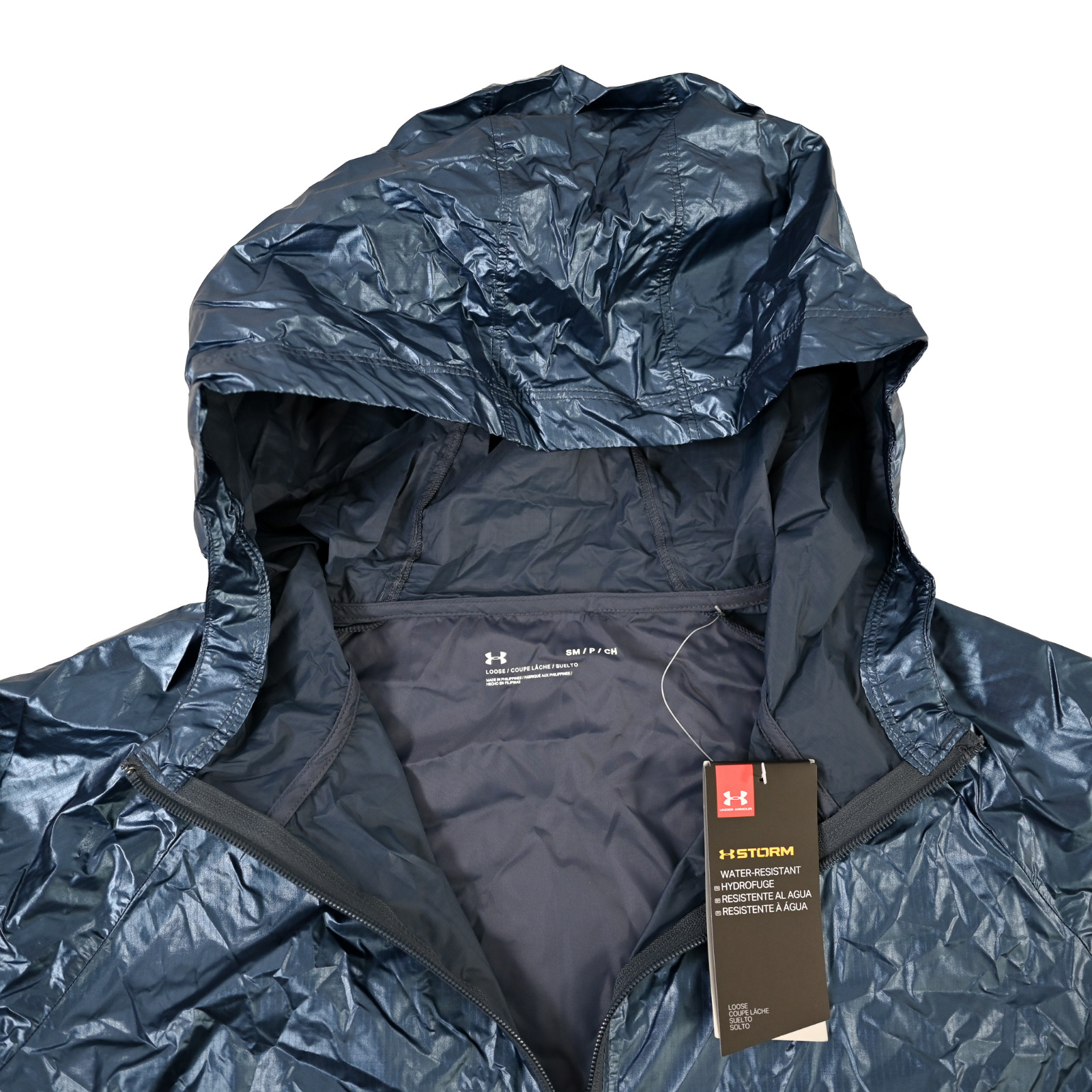Under Armour Women's Small UA Storm Metallic Woven FZ Hooded Jacket Dark Blue