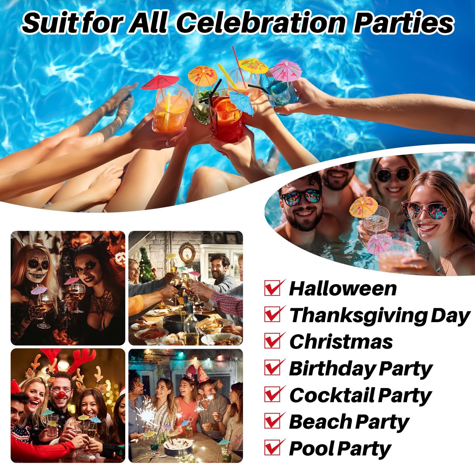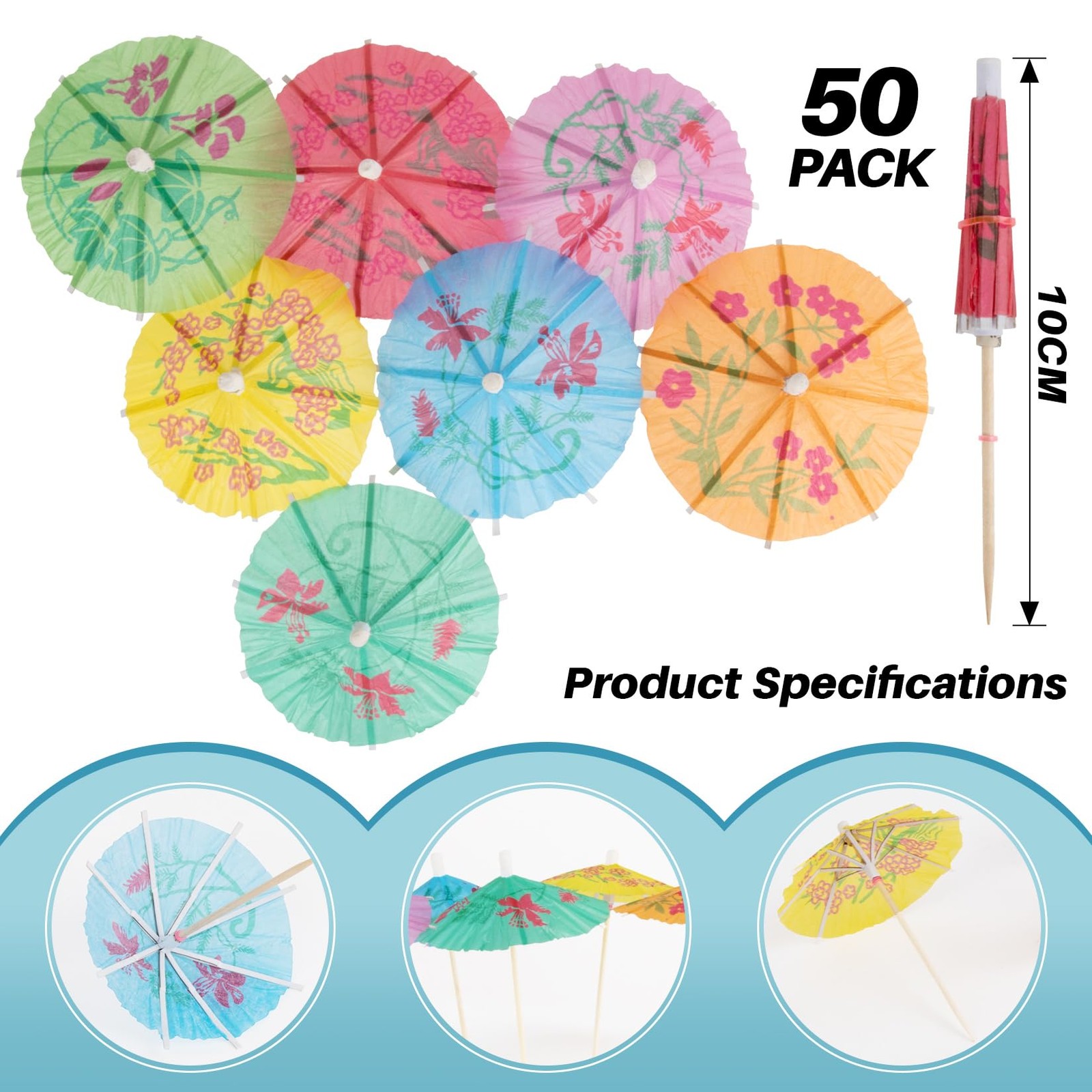 Cocktail Umbrellas - 50PACK Drink for Drinks, MINI, Multicolor