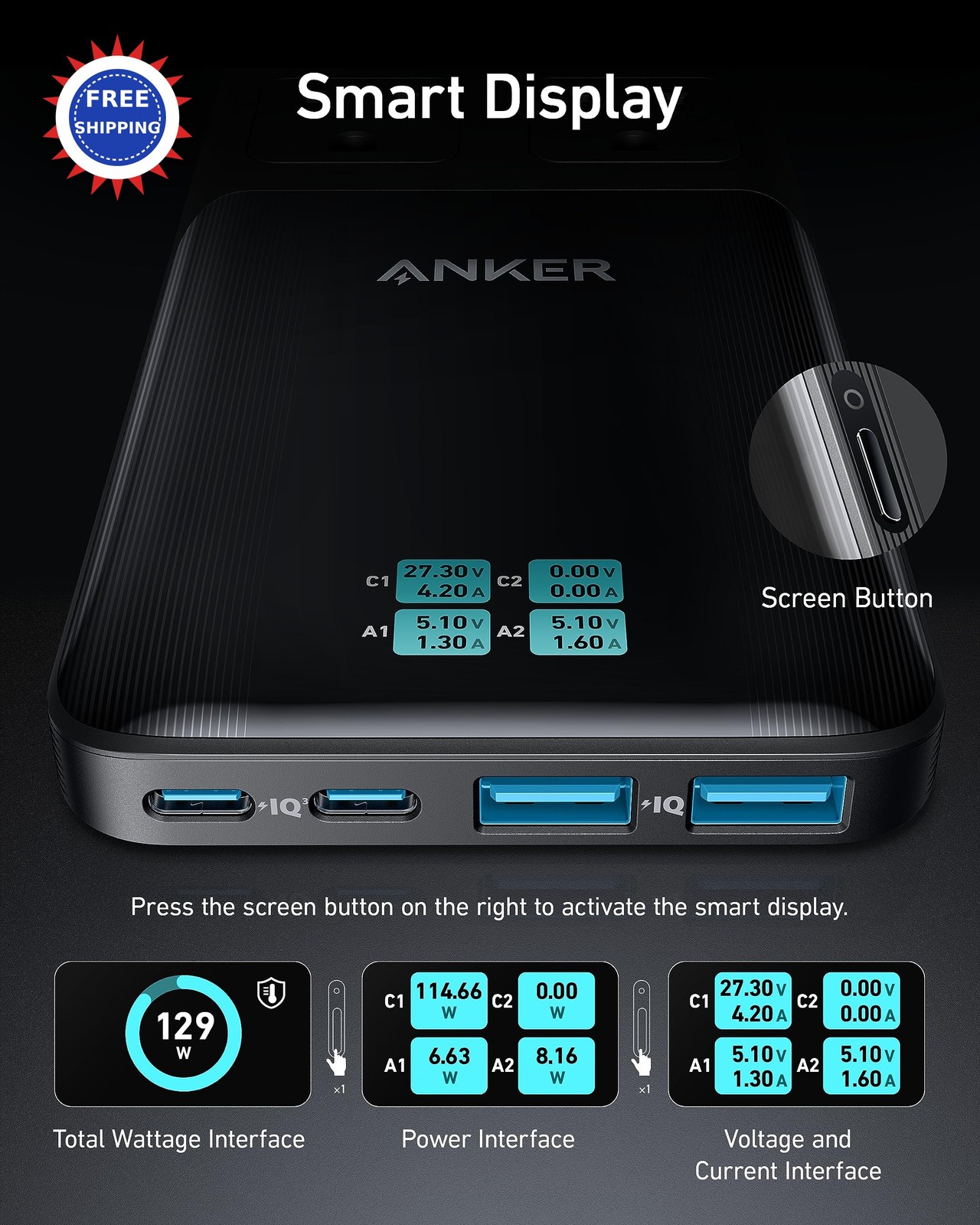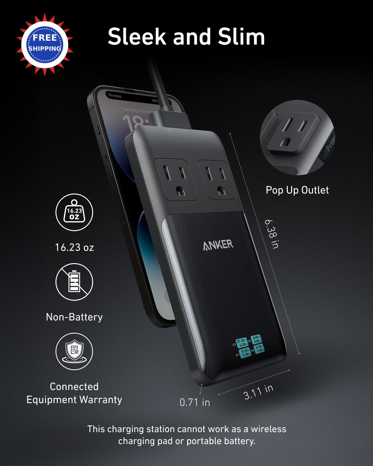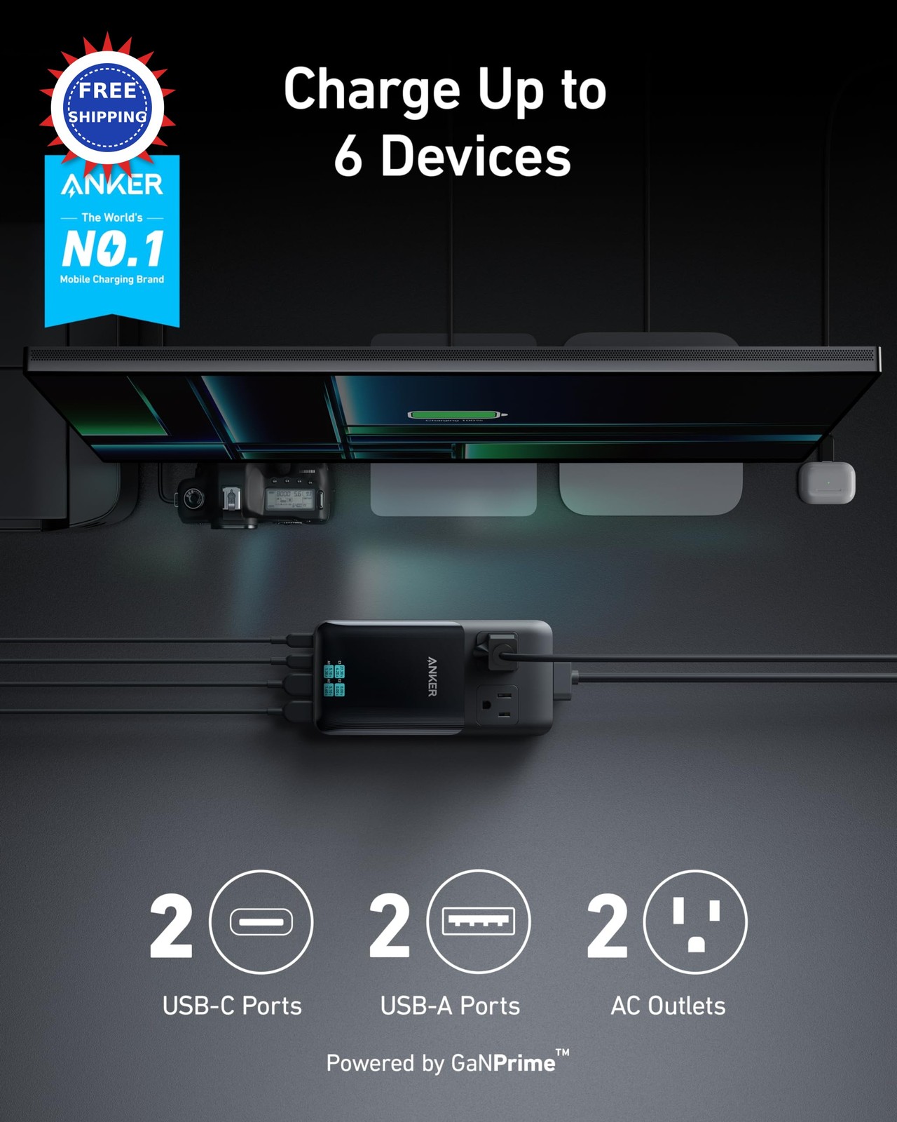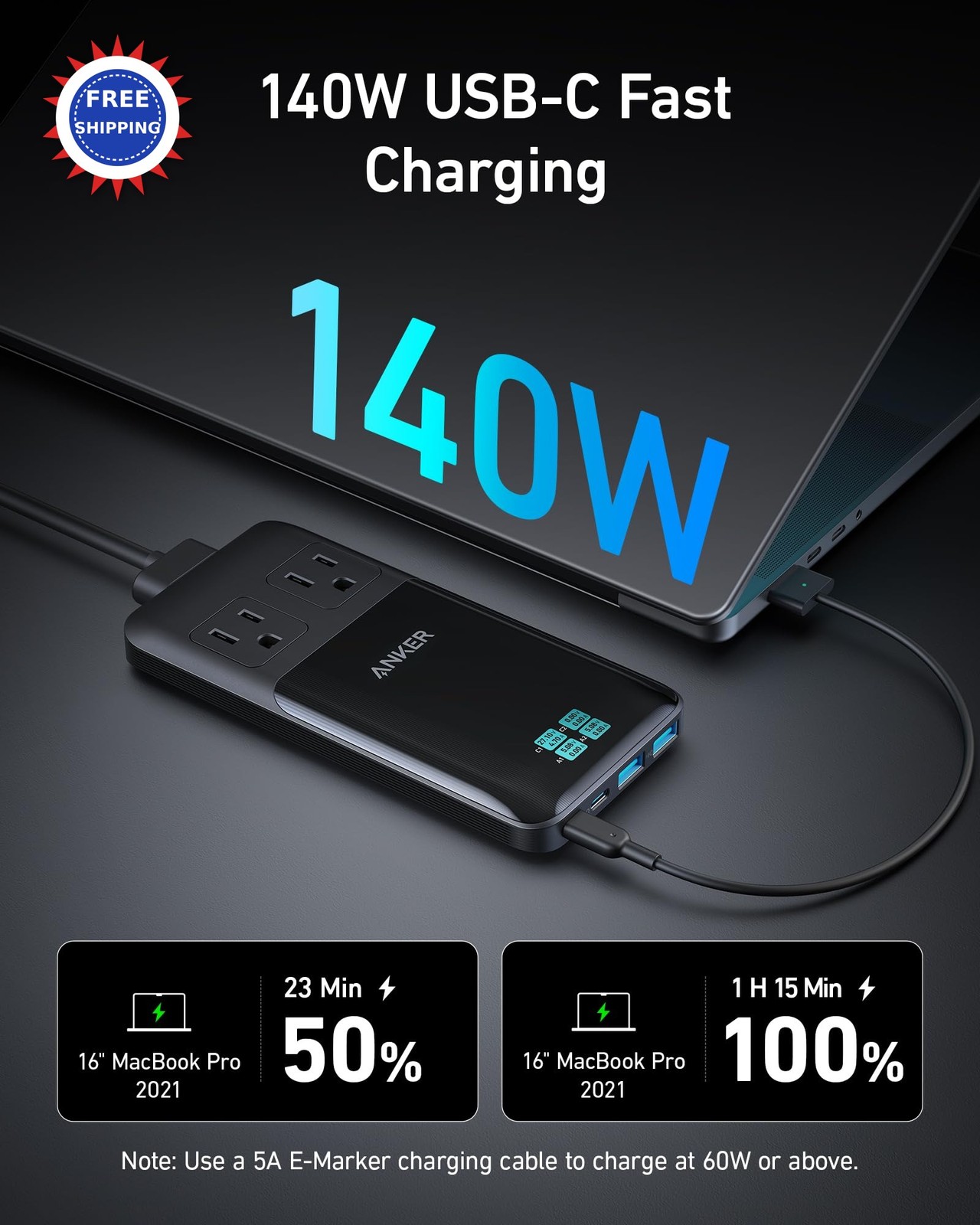 Anker Prime 6 in 1 USB C Charging Station 140W Compact Power Strip 5 ft Cord