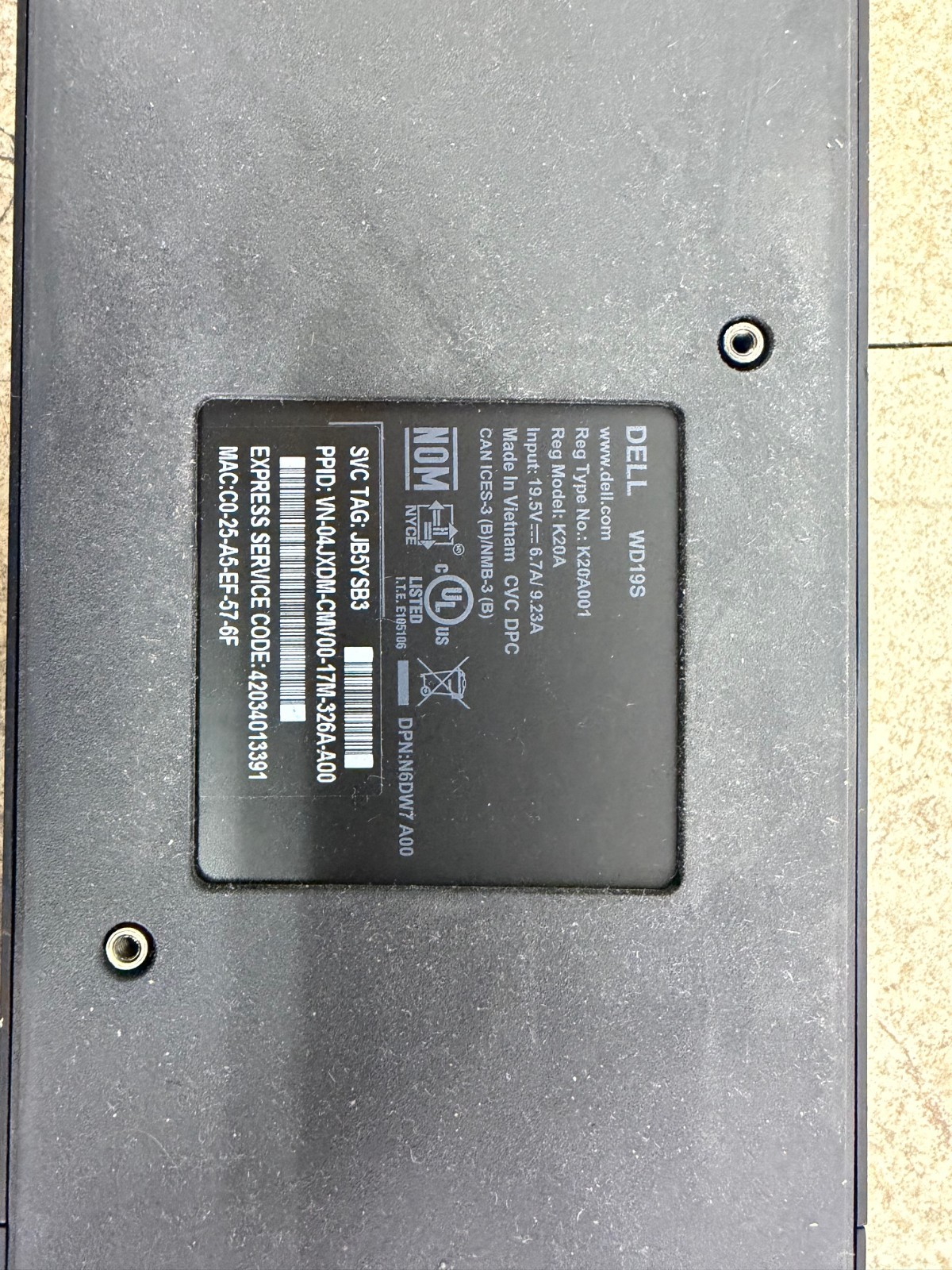 Dell WD19S K20A001 USB Type-C Docking Station w/ 180W Power Adapter Tested