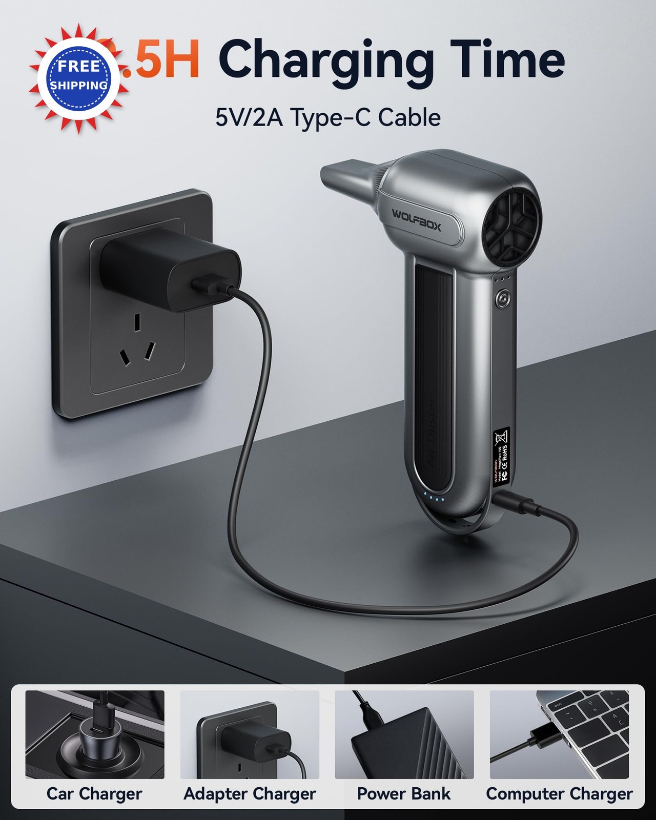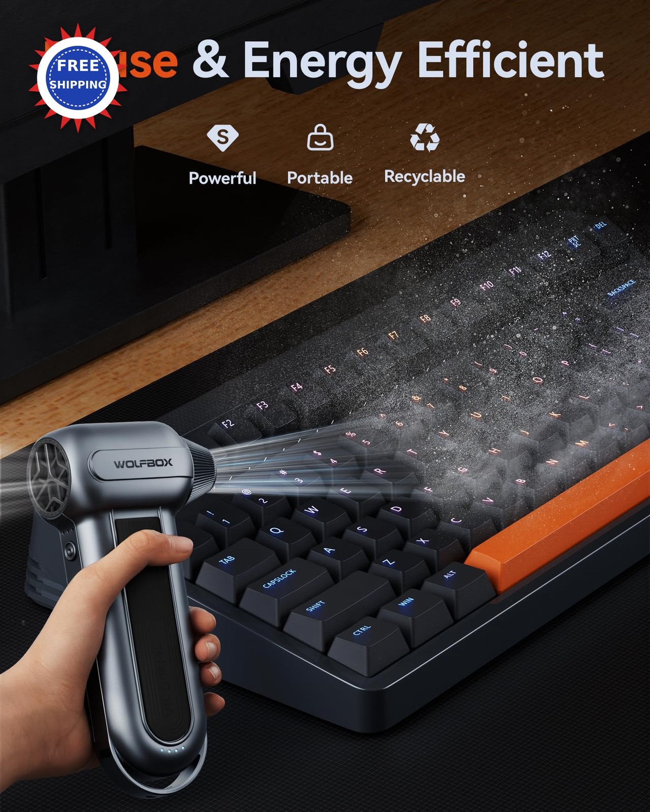 WOLFBOX Electric Air Duster 150000RPM Super Power Cordless Air Duster