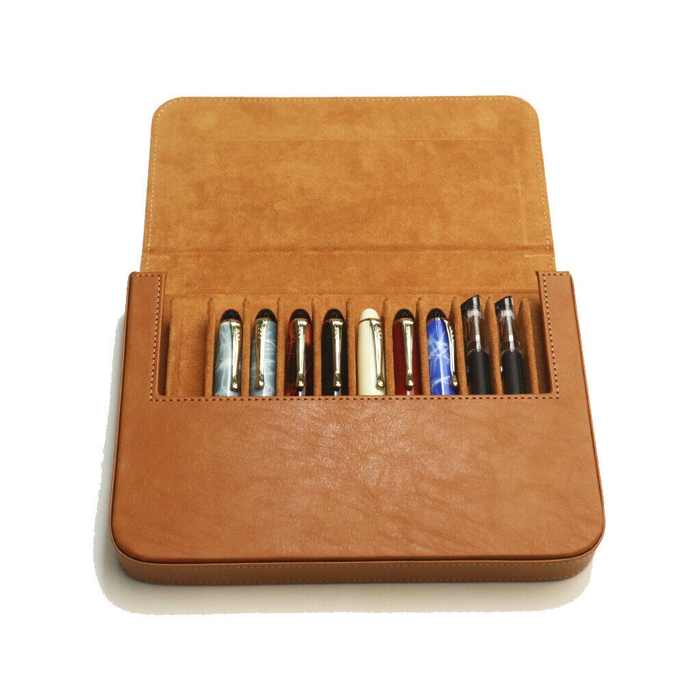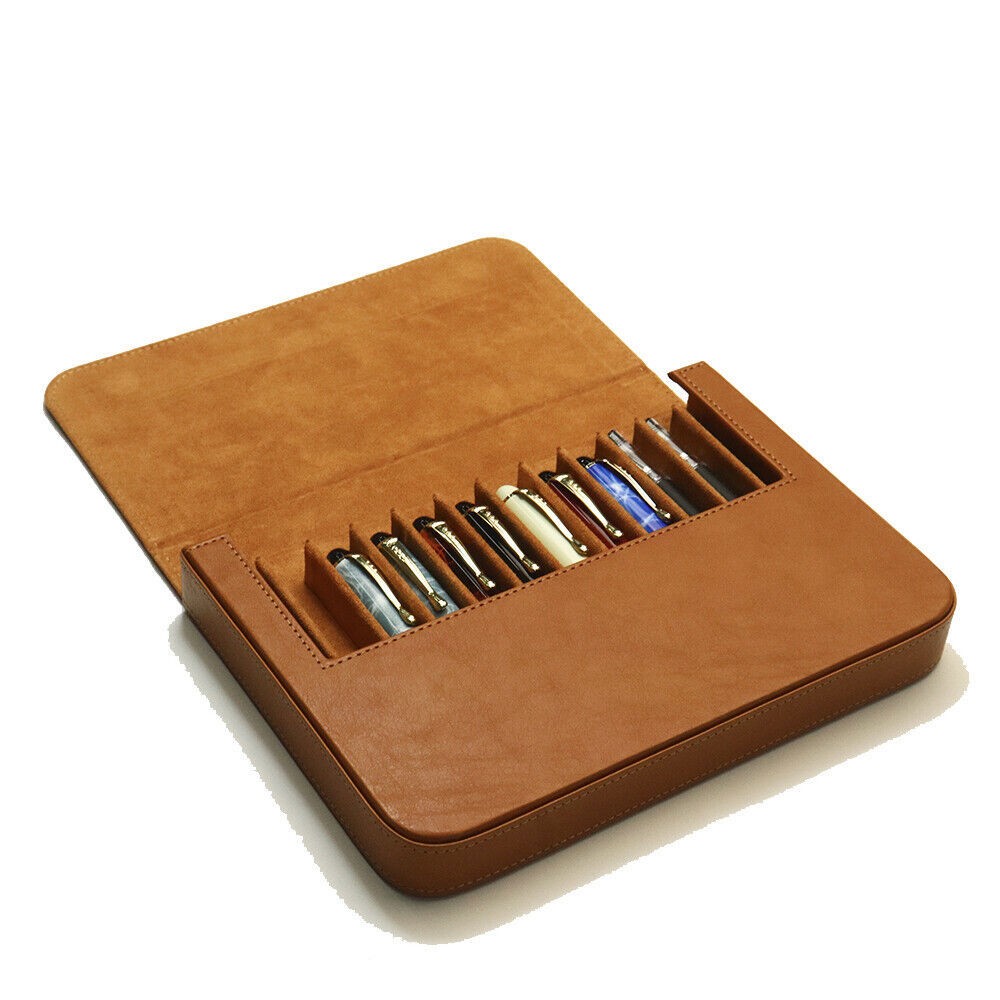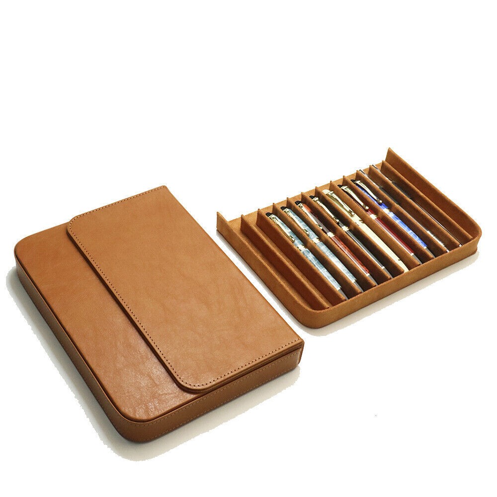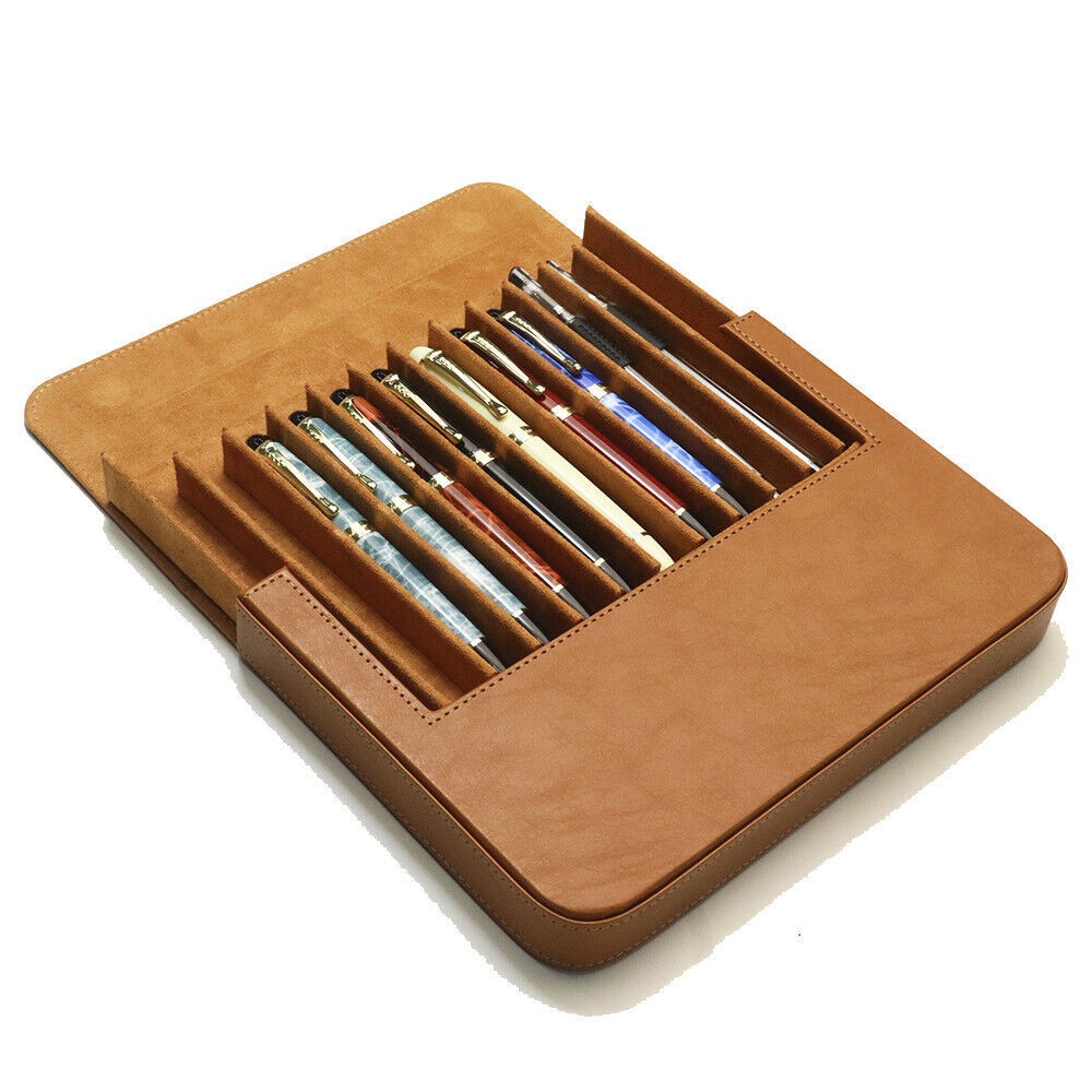 • Fountain Pen Case 12 Slots Leather Storage Box Organizer Collection Display Tray