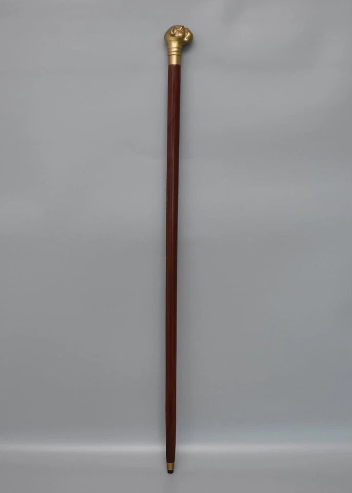 как выглядит Victorian Eras Style Brass Finished Bull Dog Head Handle Wooden Walking Stick фото