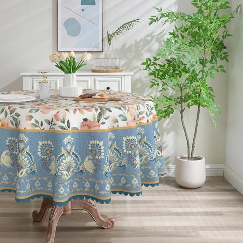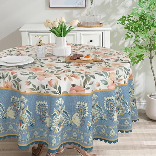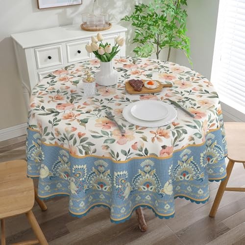 Spring Round Tablecloth 70 inches - Spring Decorations 60 Round Floral Bird