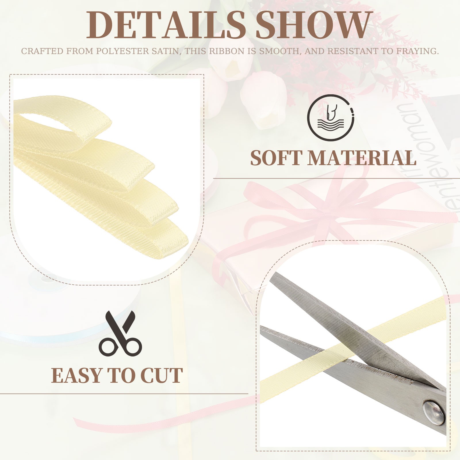 1/4 Inches x 50 Yards Satin Ribbon Roll Gift Wrapping Ribbon, Beige