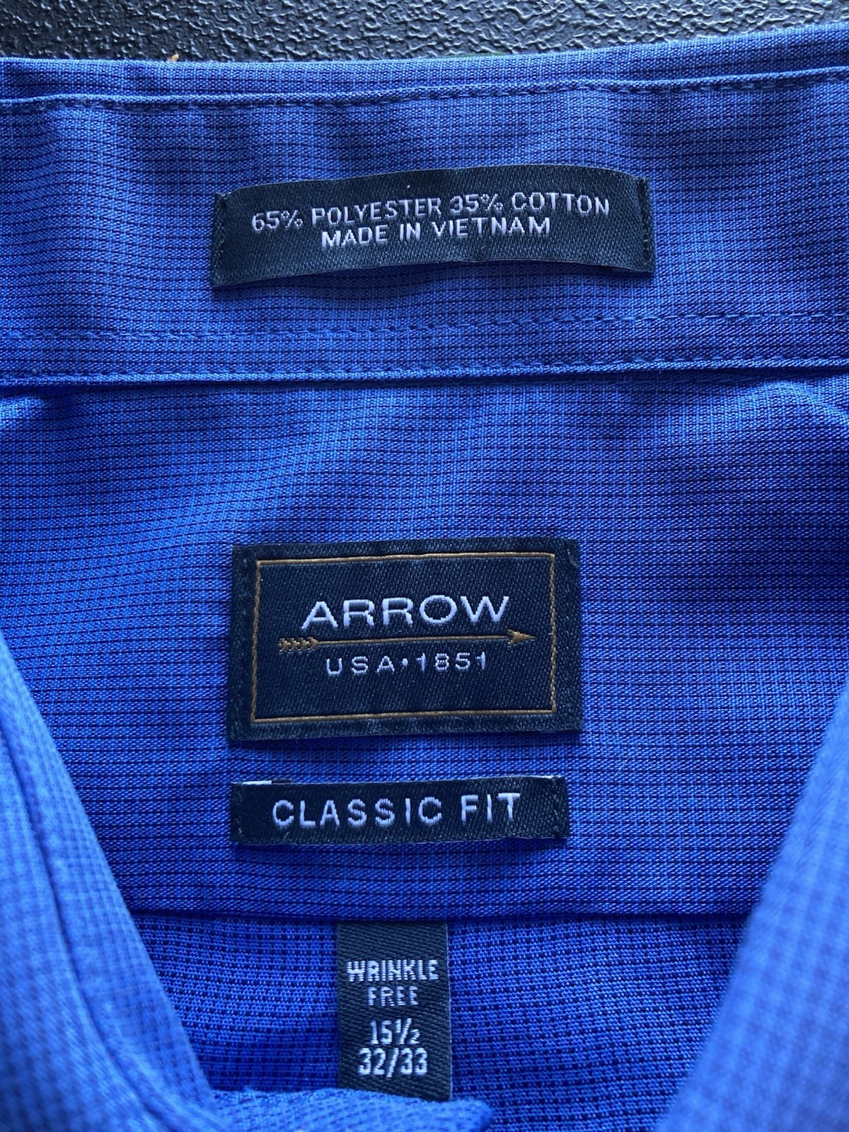 как выглядит Arrow Men s Dress Shirt Button Up Blue Classic Fit NWT Size 15 1/2 32/33 New See фото