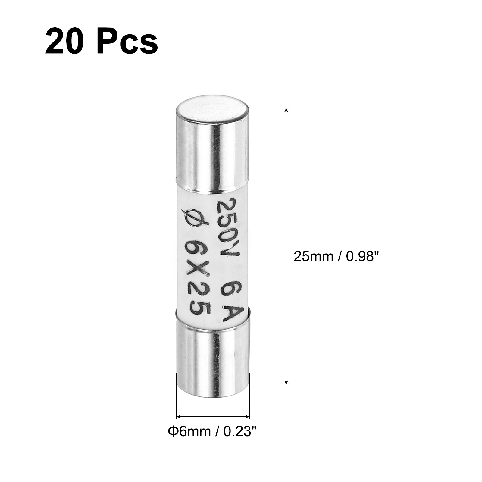 20pcs, Ceramic Cartridge Fuses 6A 250V 6x25mm Fast Blow for Energy Saving Lamp