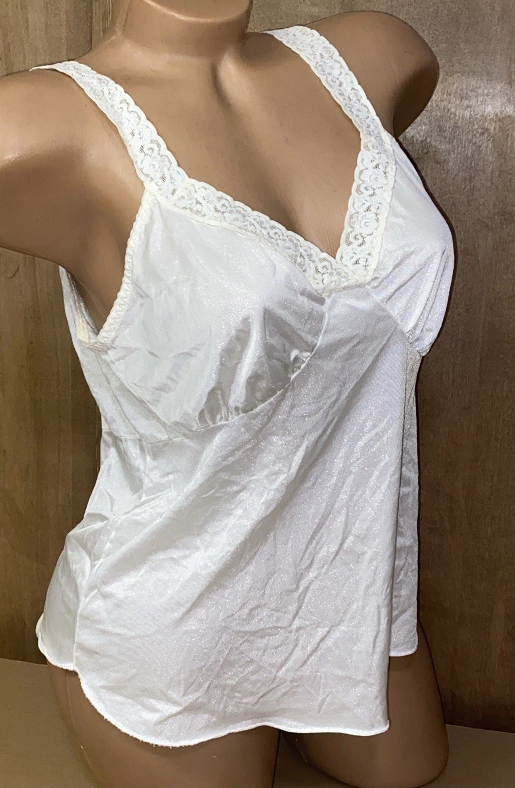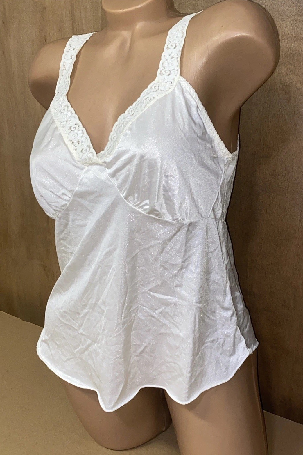 VTG Camisole Dixie Belle SZ 38 Lace Nylon White V-Neck Lingerie Tank Cami L76