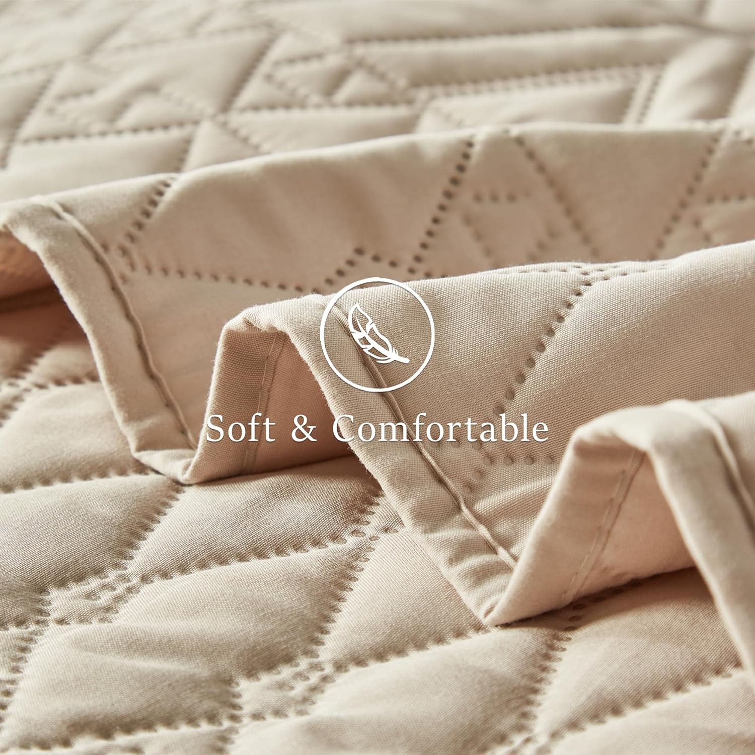 King/Cal King Size Quilt Bedding Set,Beige Lightweight Microfiber Soft Bedspread