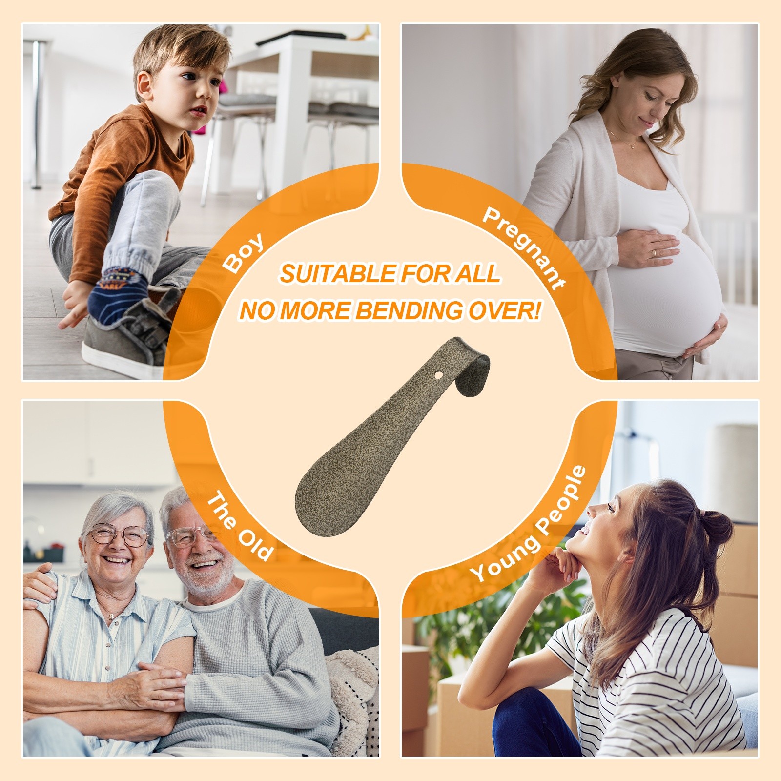 Shoe Horn 5.7 Metal Leather Curved Handle Shoe Helper Shoehorns, Black Gold