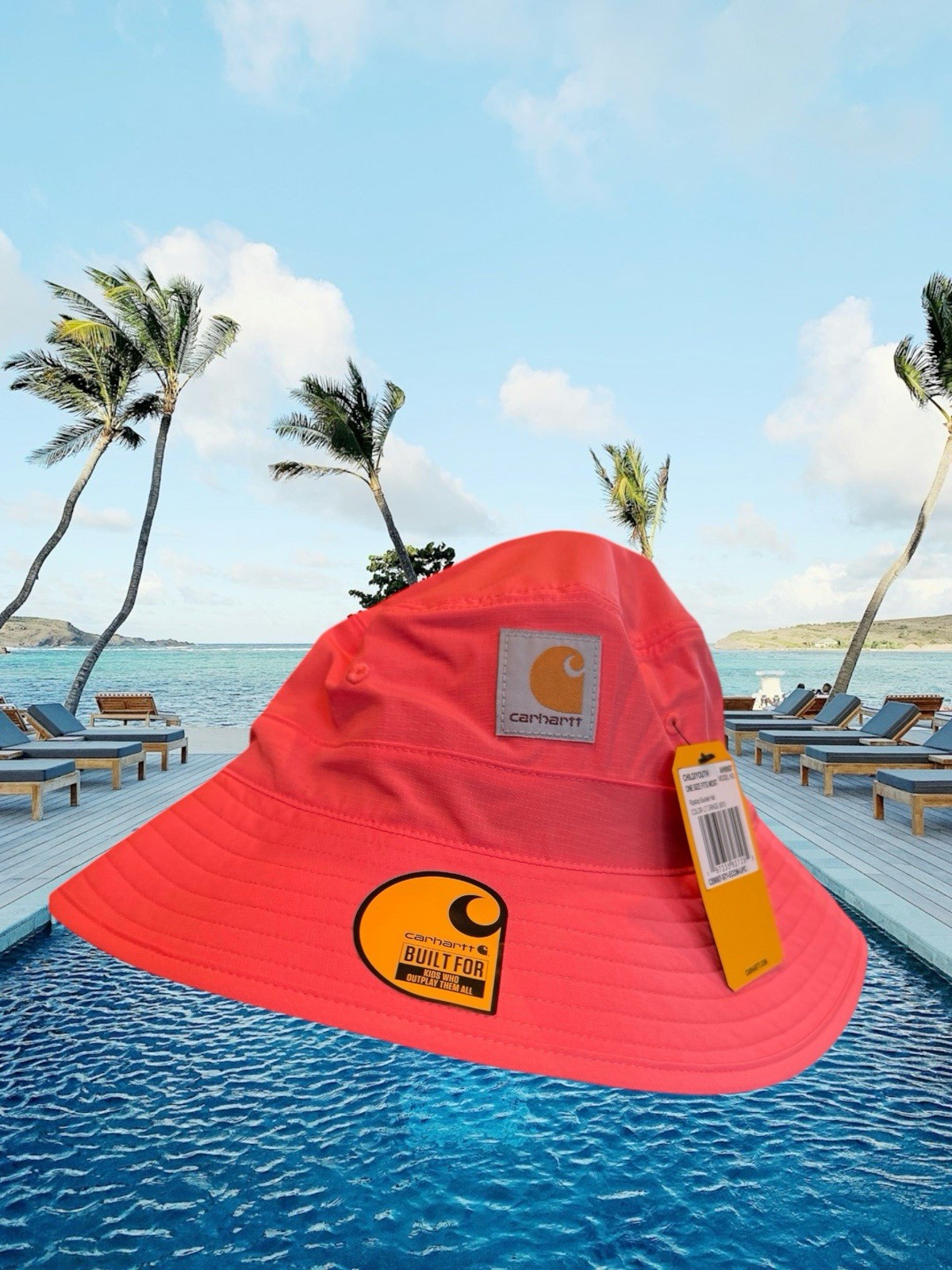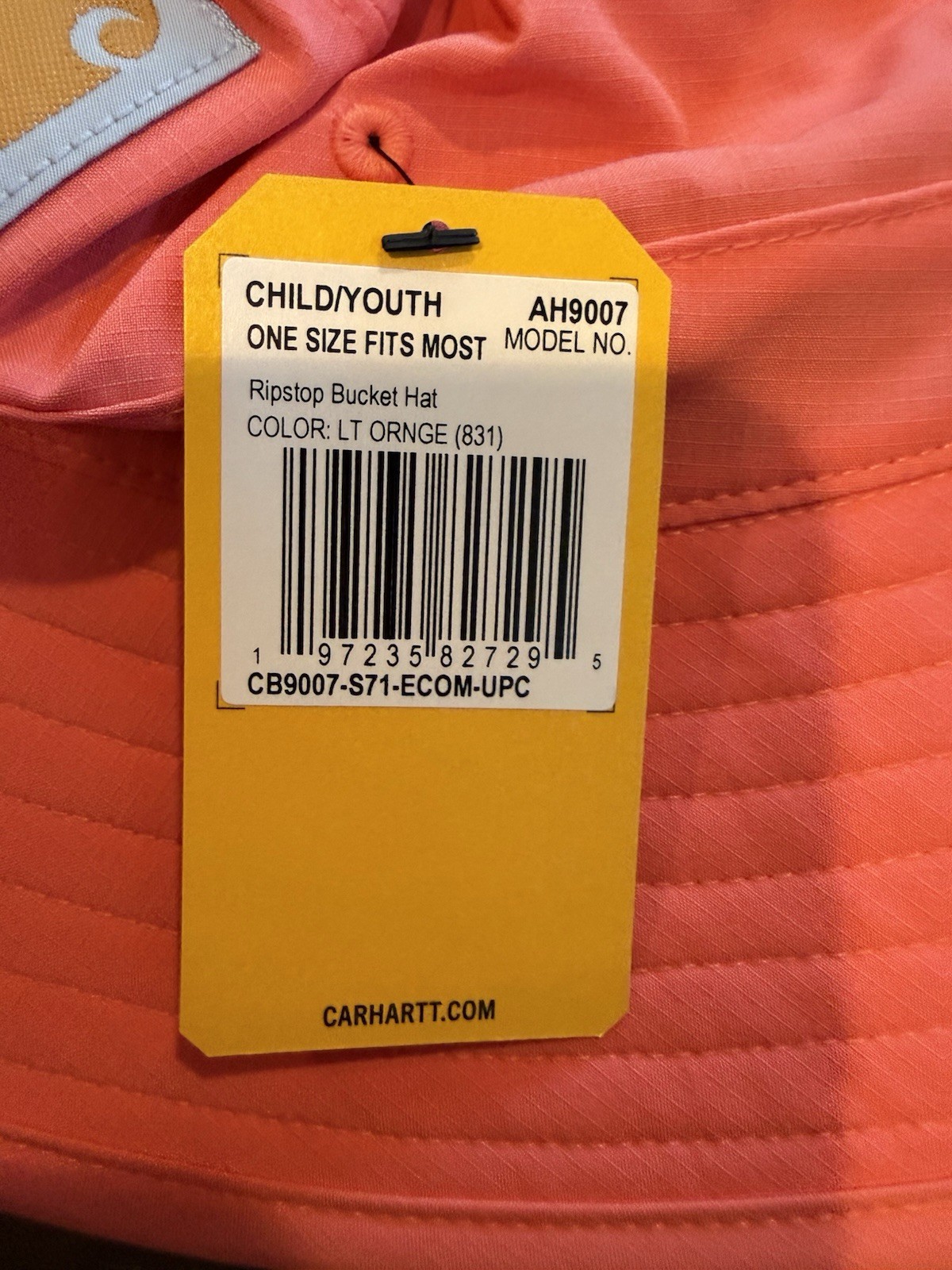 Carhartt Child s one size ripstop bucket hat coral orange beach pool protection