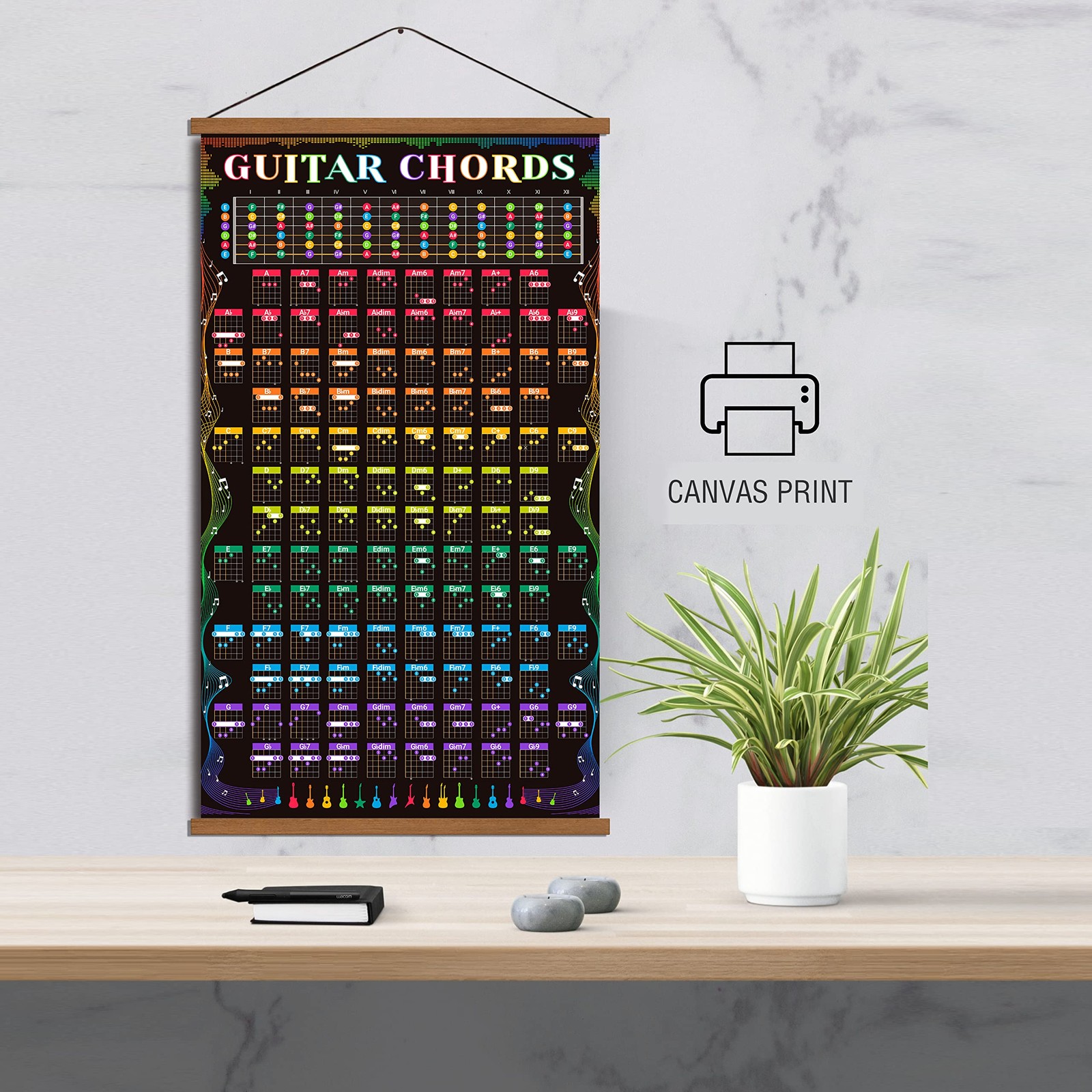 Guitar Chords Scale Poster Music Fretboard Notes Theory Acoustic Guitar Wall ...