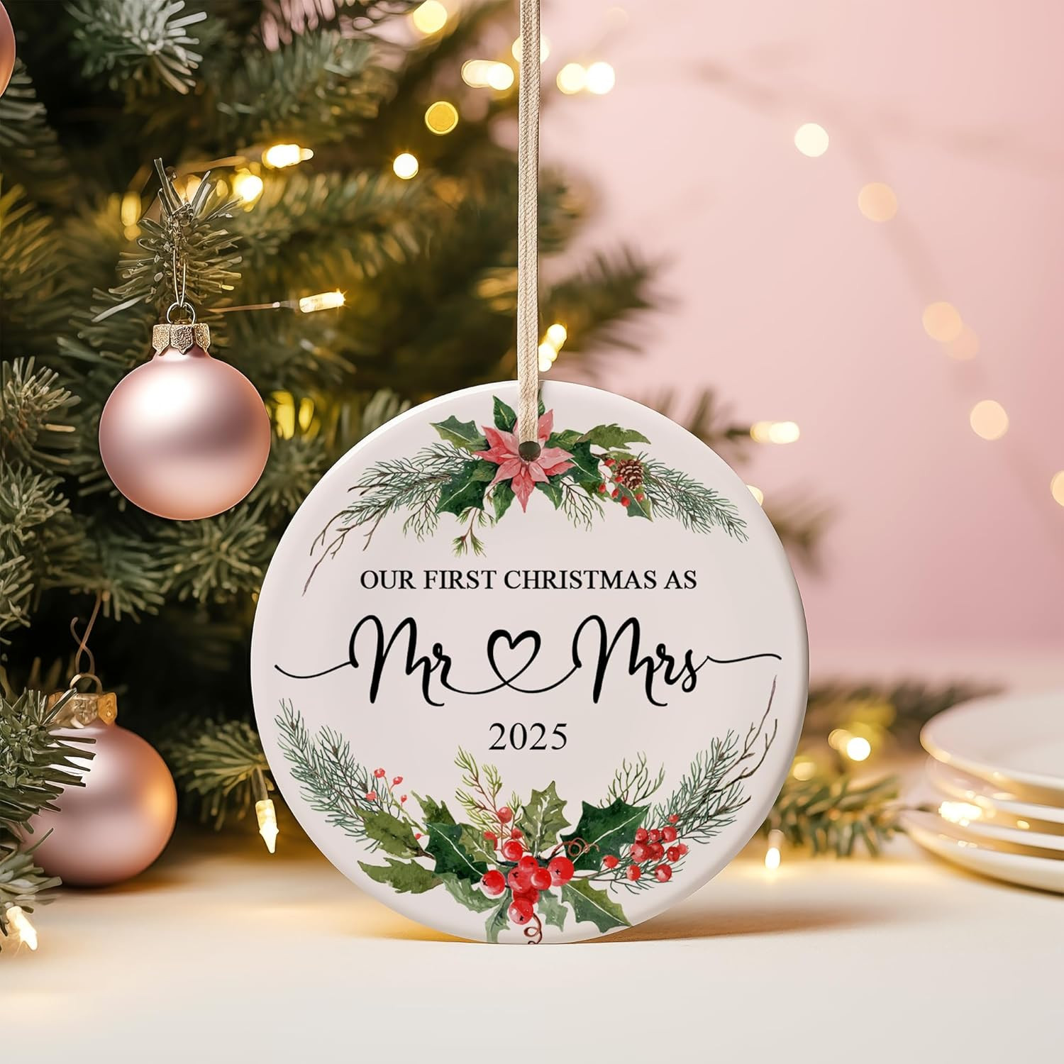 • Our First Christmas as Mr and Mrs Ornament 2025 Ceramic 1St Married Christmas