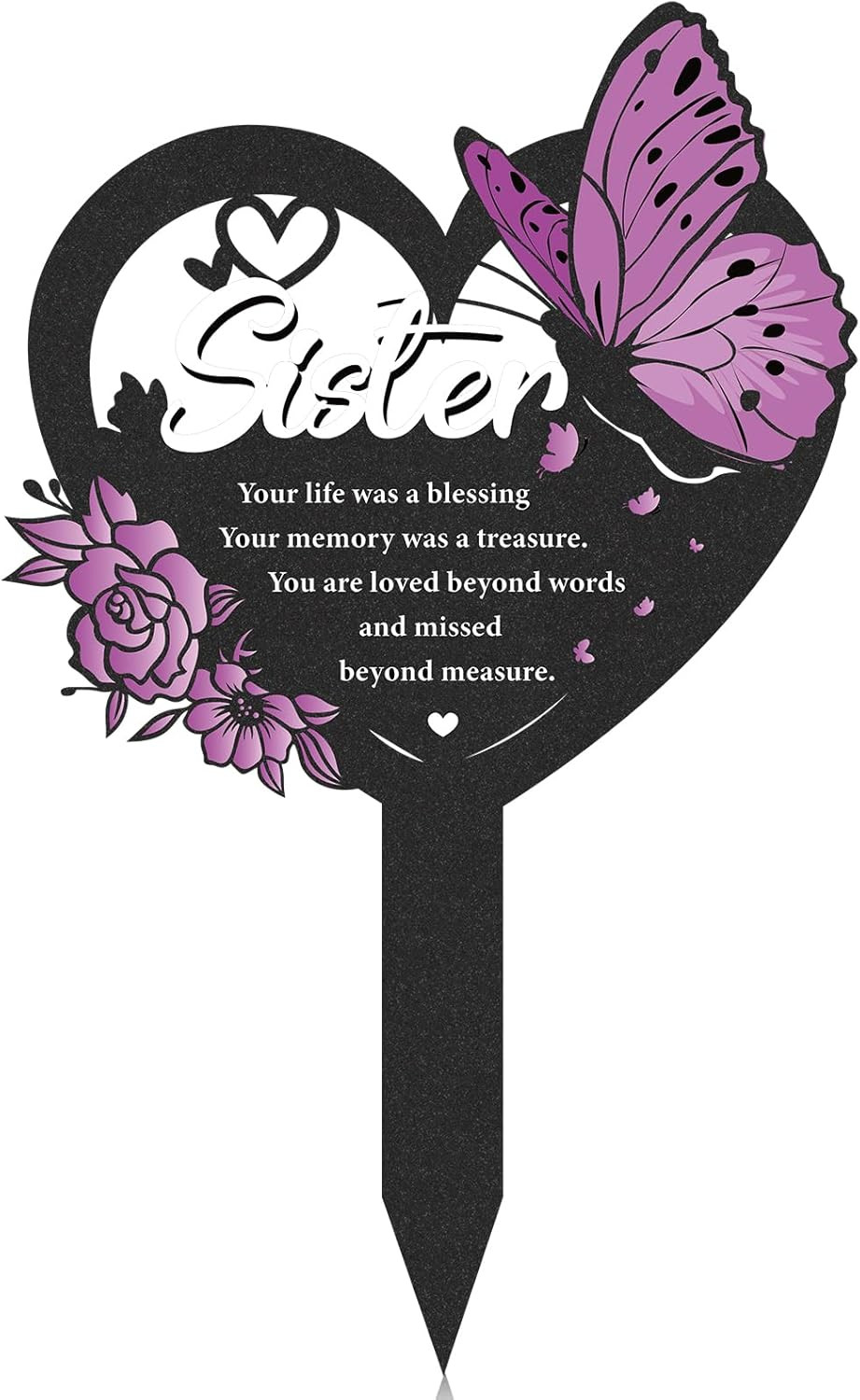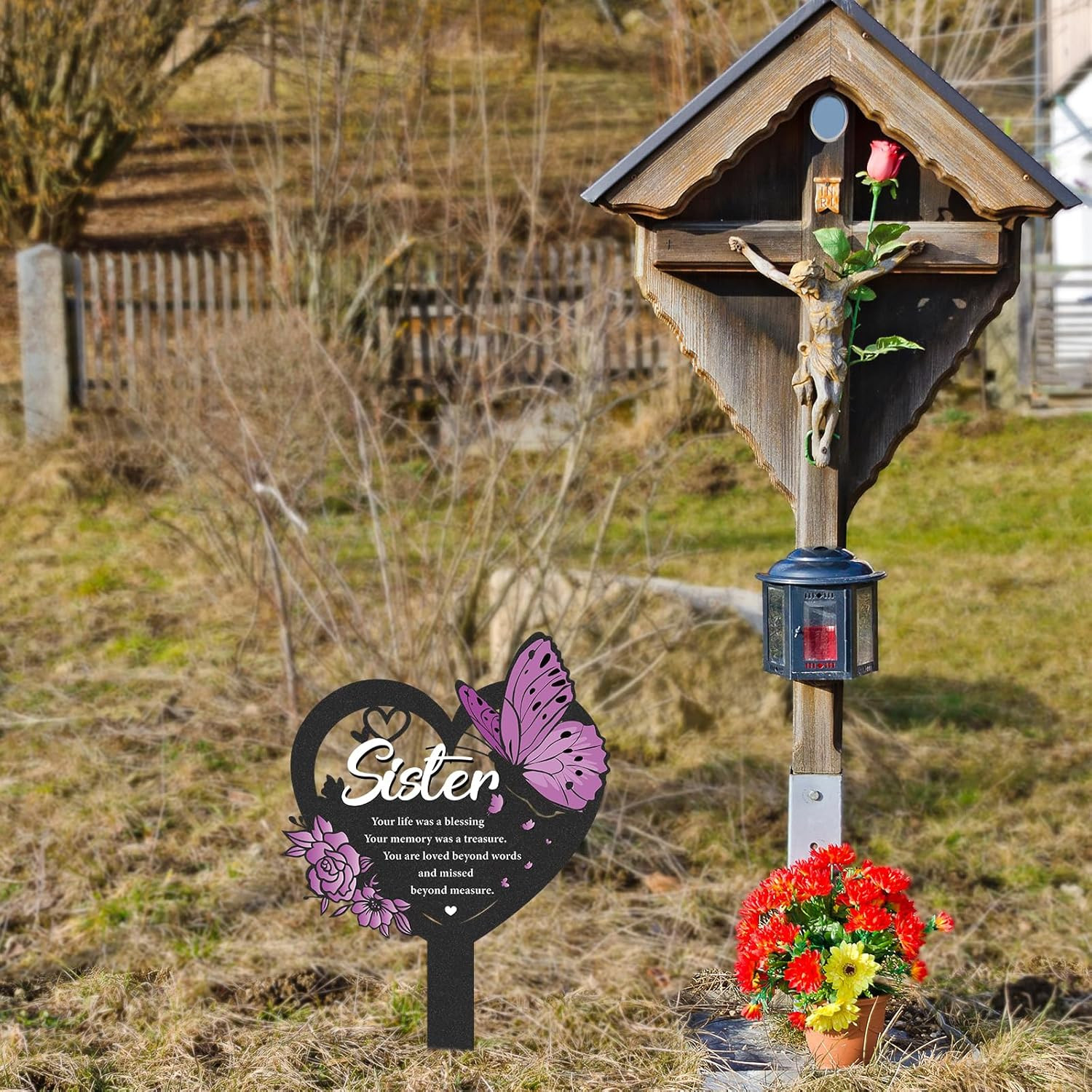 Memorial Sister Grave Stakes - Metal Butterfly Cemetery Markers Decorations for