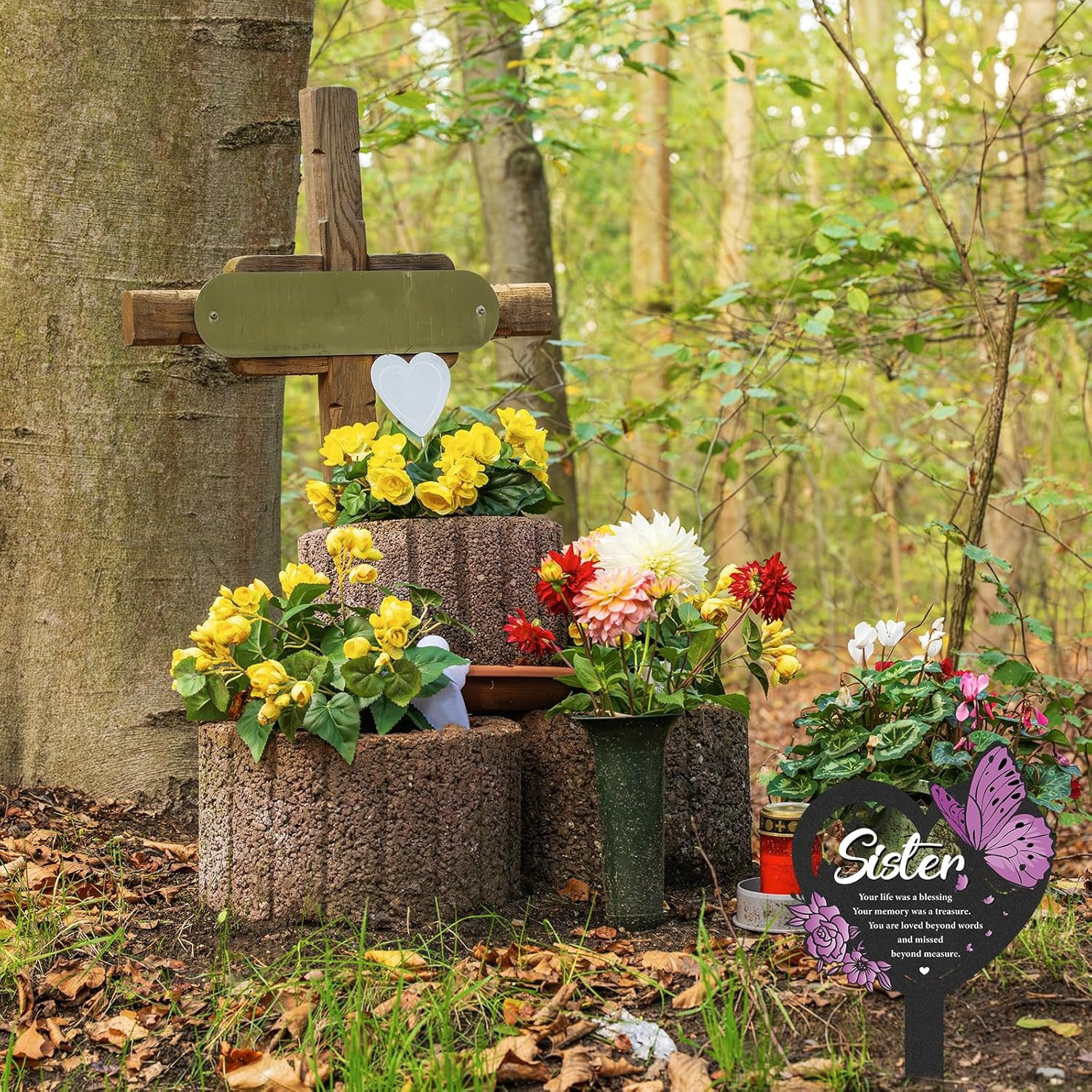 • Memorial Sister Grave Stakes - Metal Butterfly Cemetery Markers Decorations for