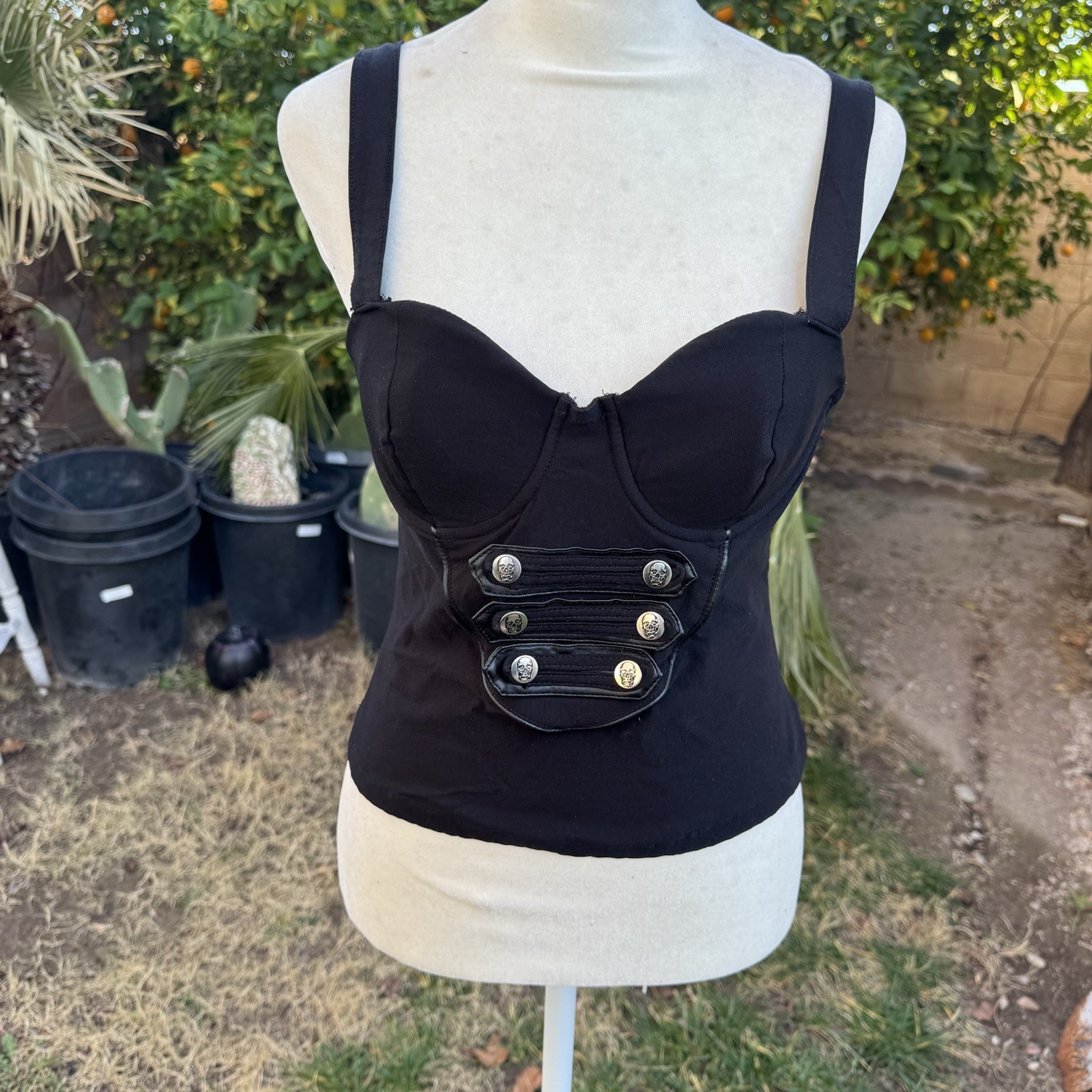 Killstar Black Button Corset Military Bustier Goth Punk Alternative Tank Top M