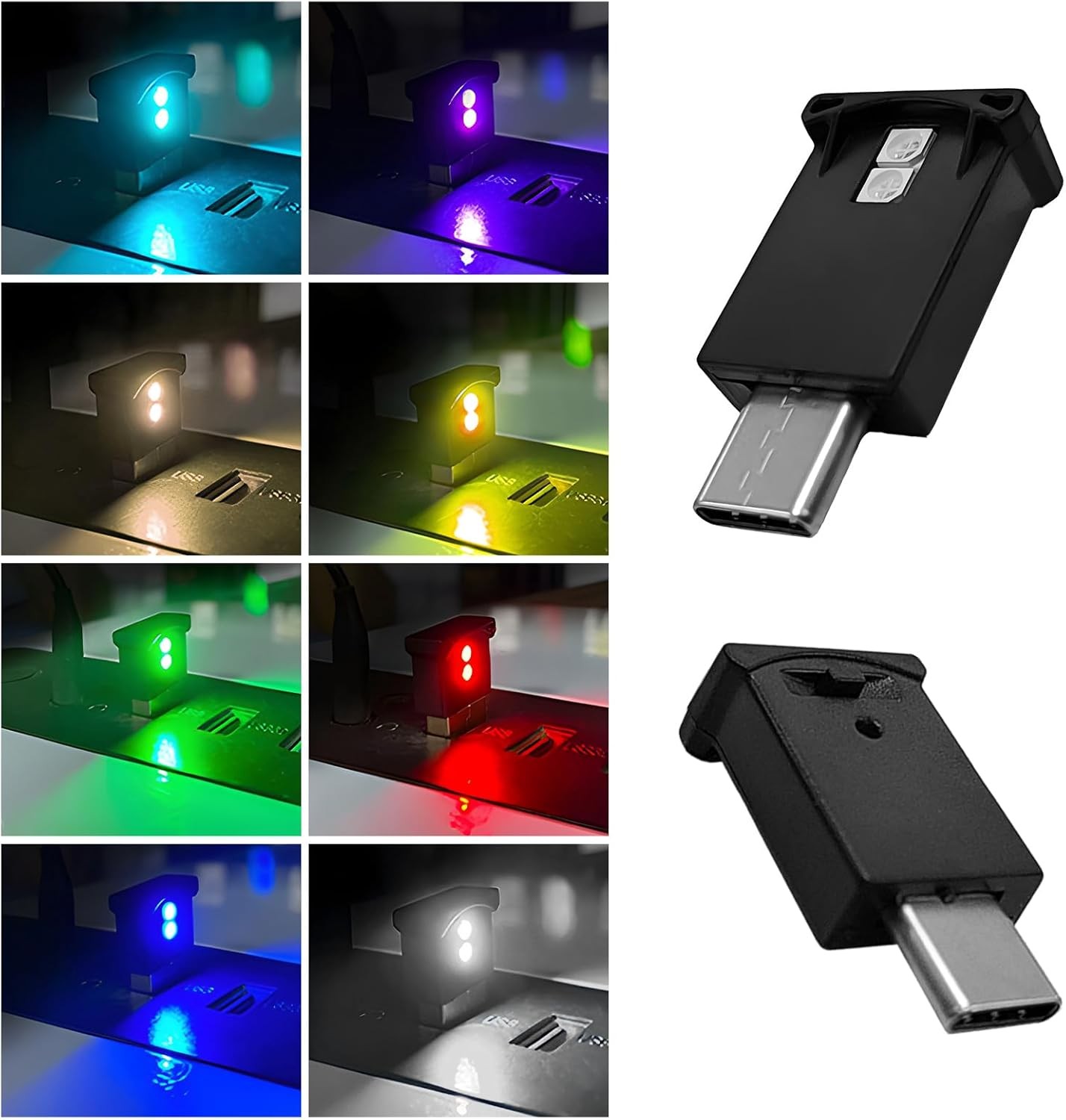 2 PCS USB Type C LED Ambient Light, 8 Colors RGB Car Interior Atmosphere Lamp, P