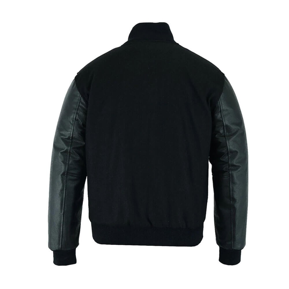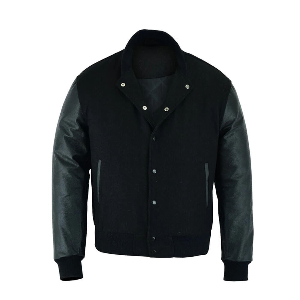 Handmade Solid Black Varsity Letterman Jacket with Cowhide Leather Sleeves