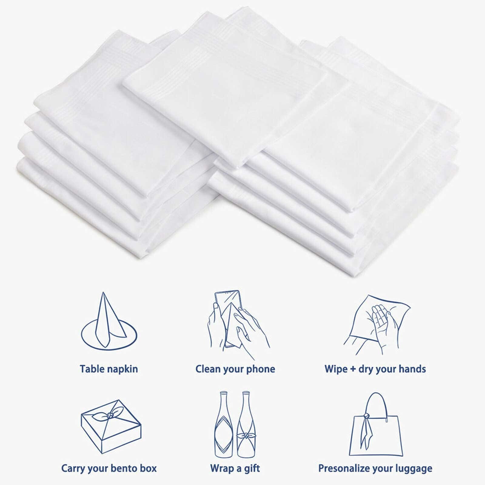 13x Handkerchiefs Cotton Classic Hankies Large Men Hankerchief Hanky Pocket Gift