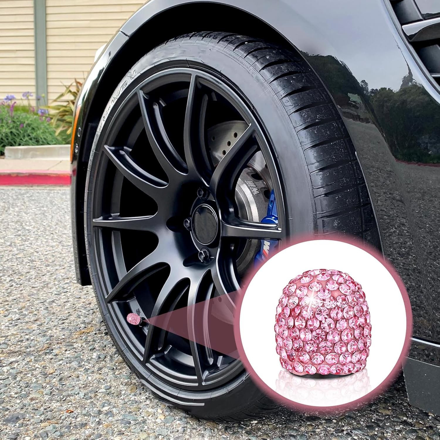 • Tire Valve Stem Caps 4Pcs Universal Stem Covers Bling Crystal Diamond Tire Valve