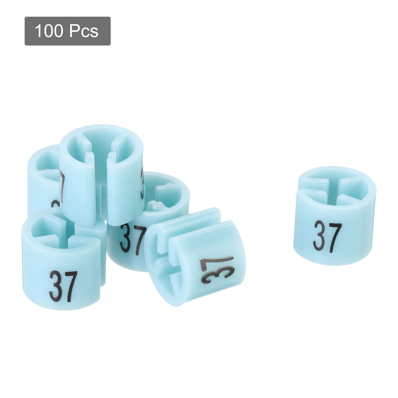 100 Pack Clothes Hanger Marker Number 37 Size Tag Fit 3.5mm Rod Light Blue