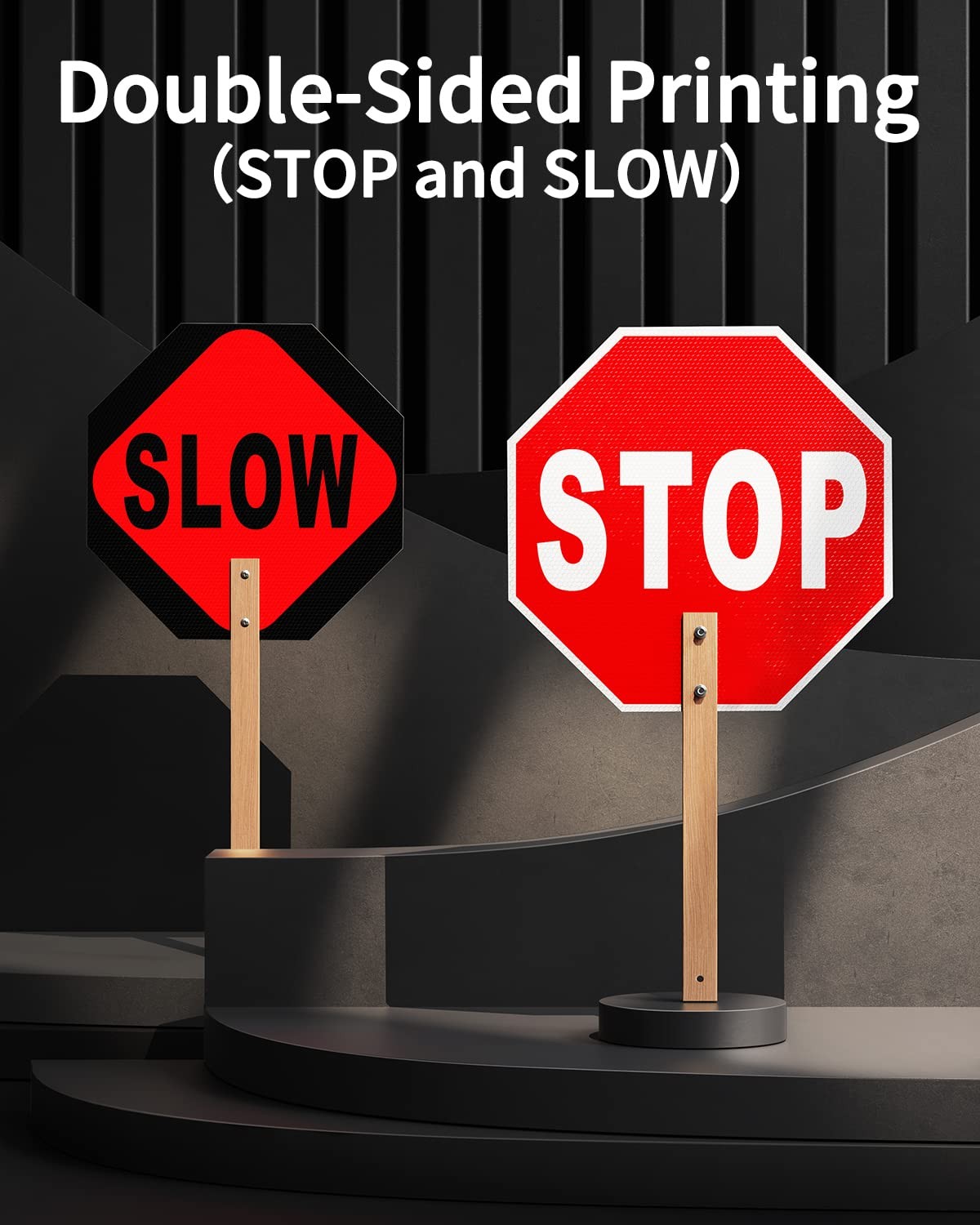 Stop Slow Sign, Double Sided Street Slow Warning Reflective Signs, 13x13 inch...