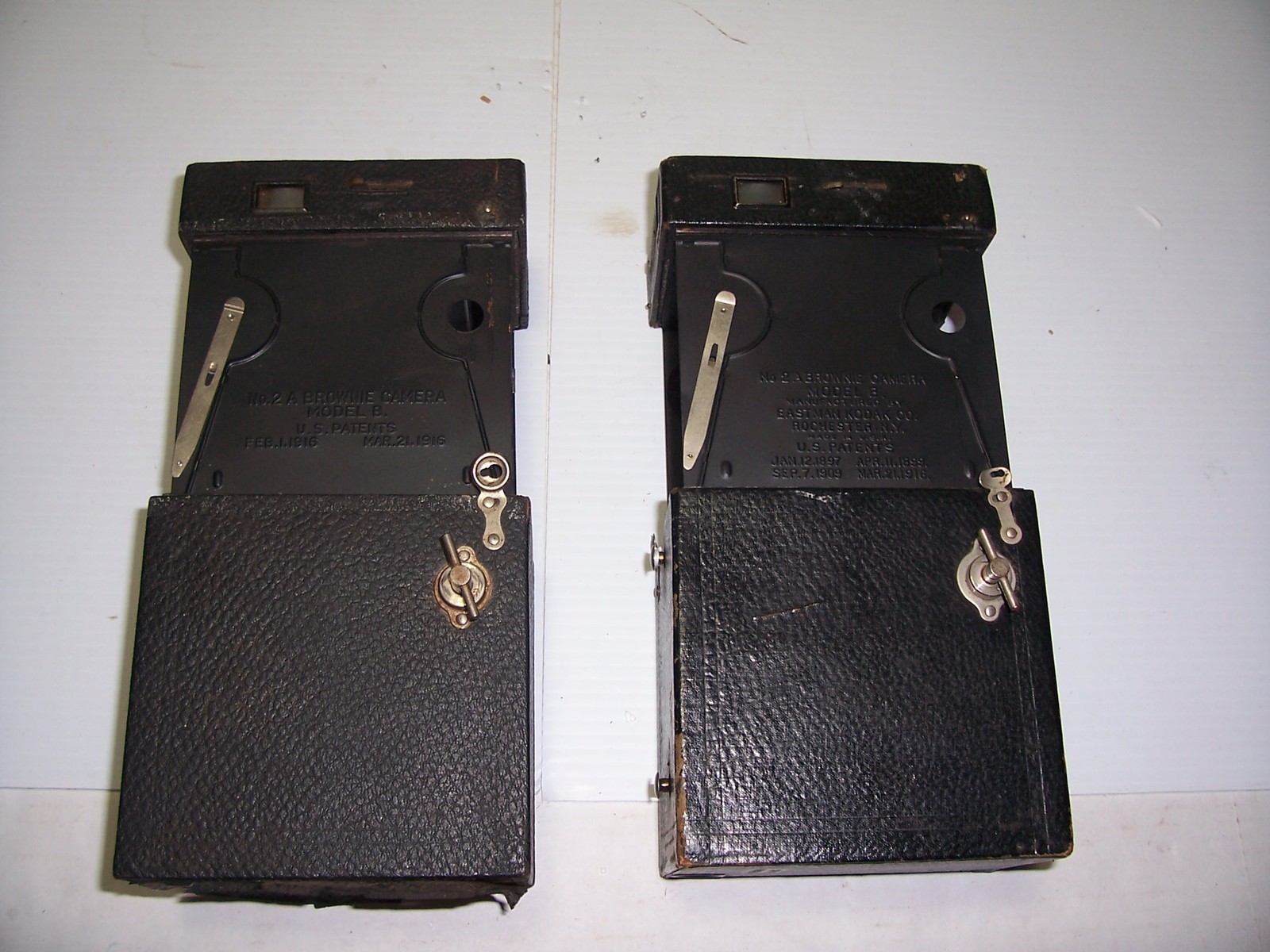 2 VTG EASTMAN KODAK BROWNIE CAMERAS 2A MODEL B DISPLAY SHELF SITTER RETRO DECOR