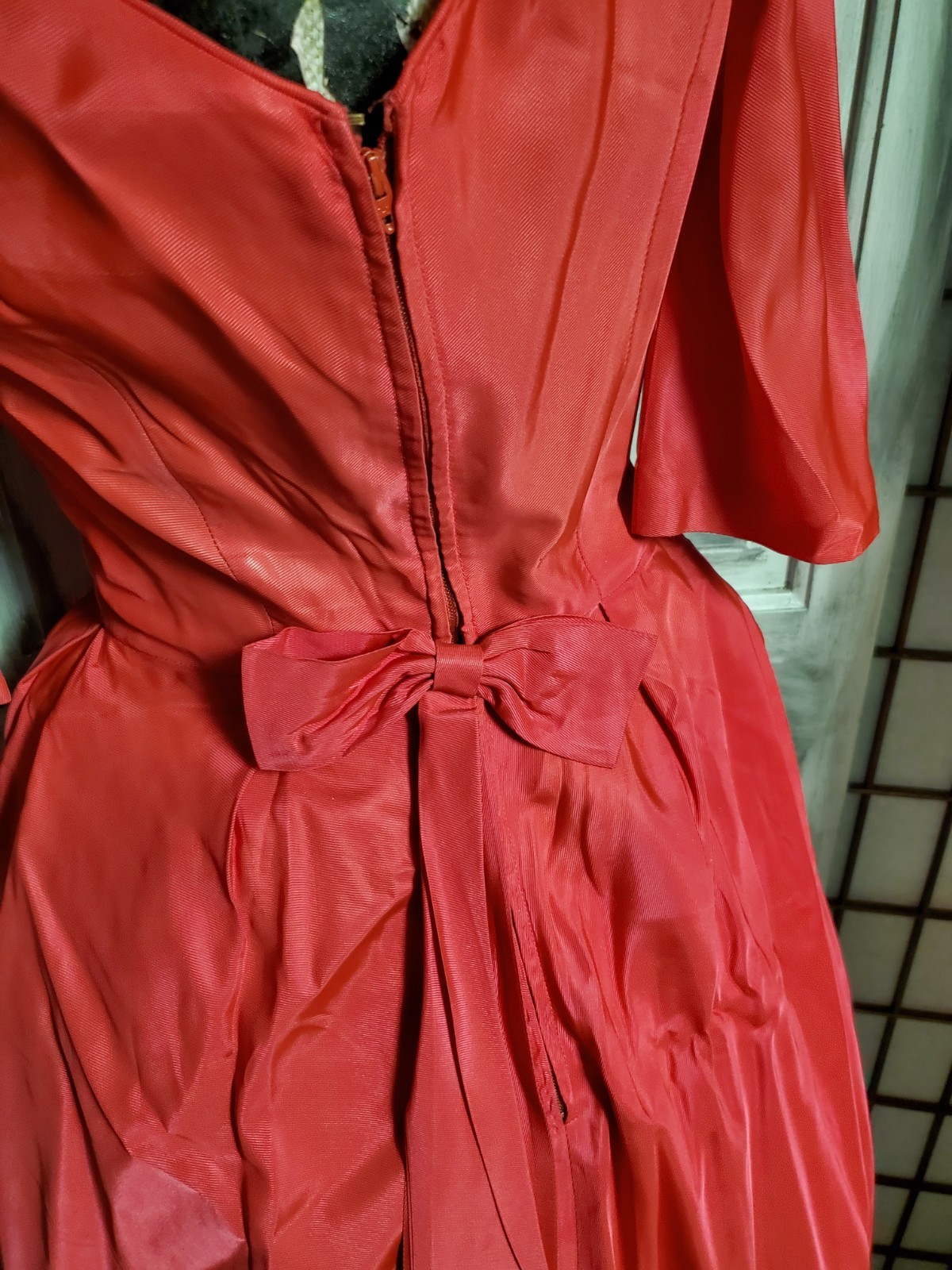 details: princess seams, attached bow on back of dress