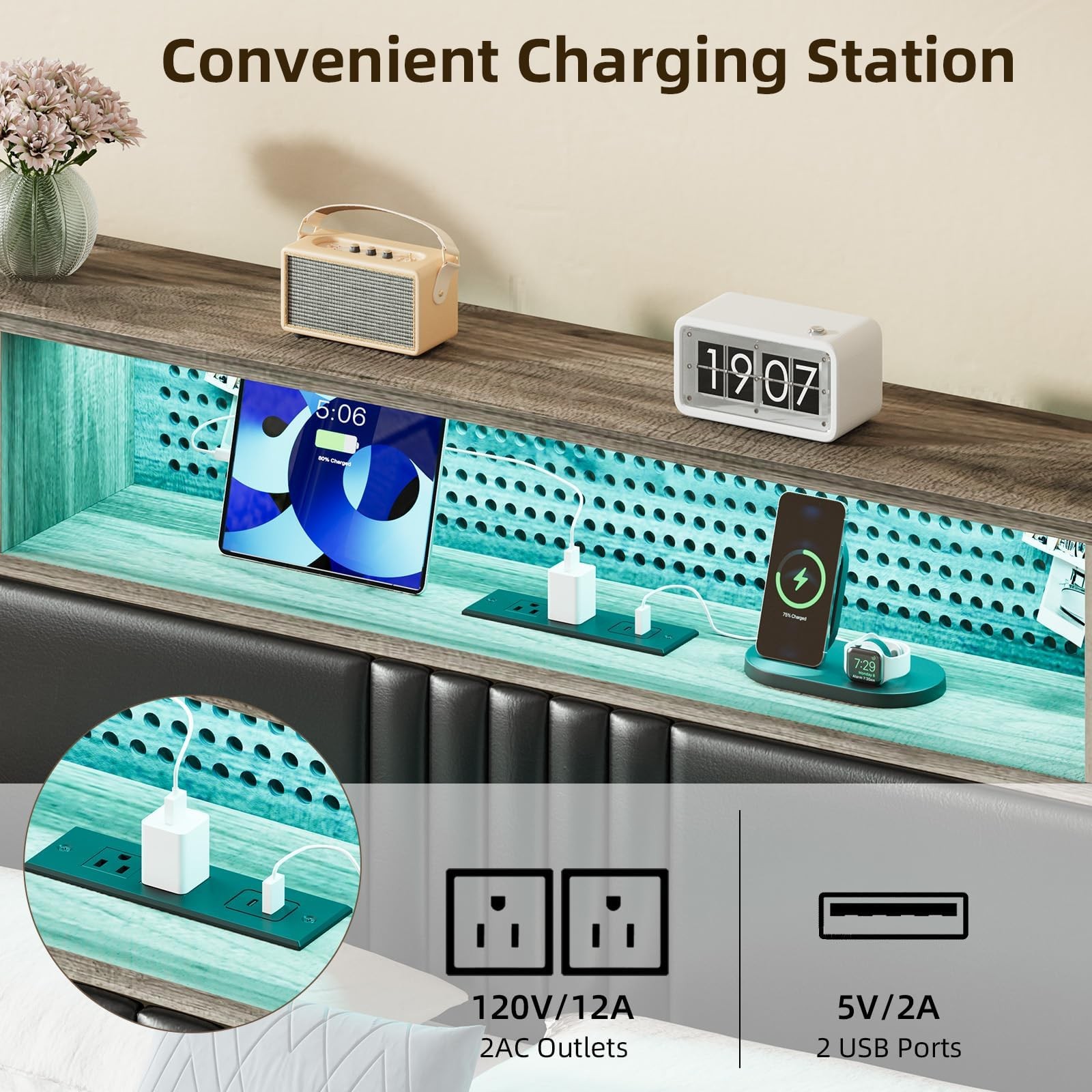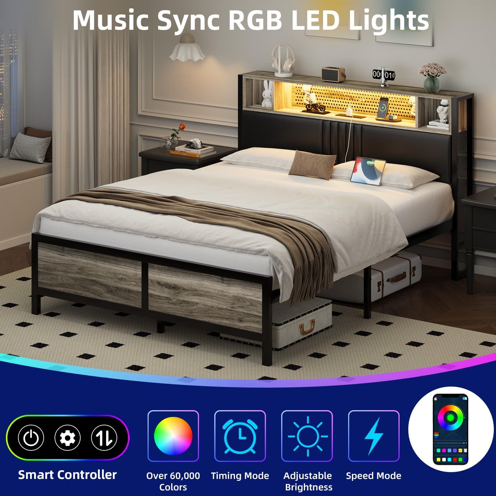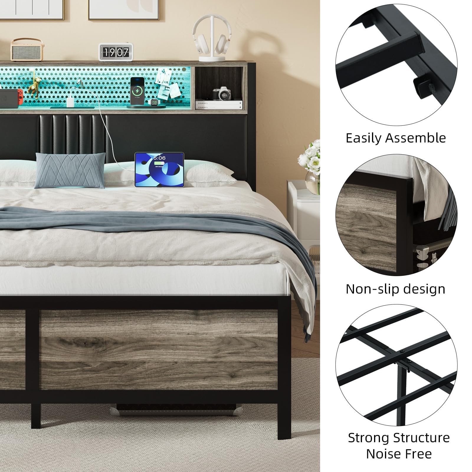 как выглядит Queen Size Bed Frame with LED Light and Charging Station фото