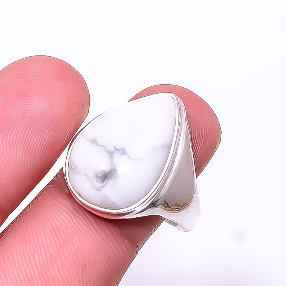 как выглядит White Howlite - United States 925 Sterling Silver Ring S.10 R13, Christmas Gift фото