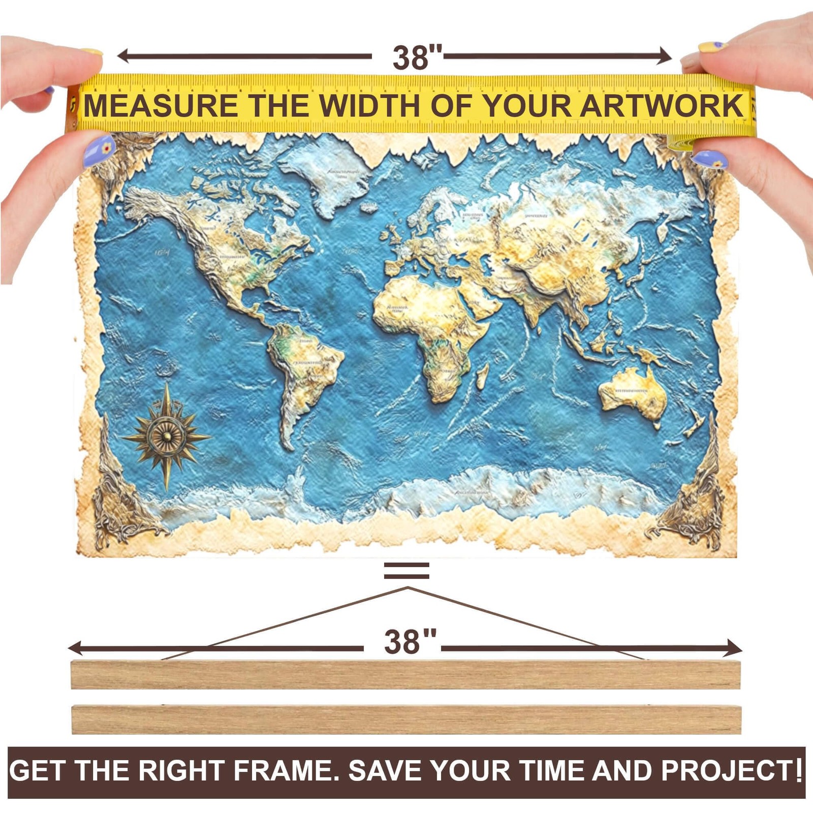 как выглядит 38" Magnetic Poster Hanger Frame - Sturdy Teak Wood Poster Frame, Strong Magn... фото