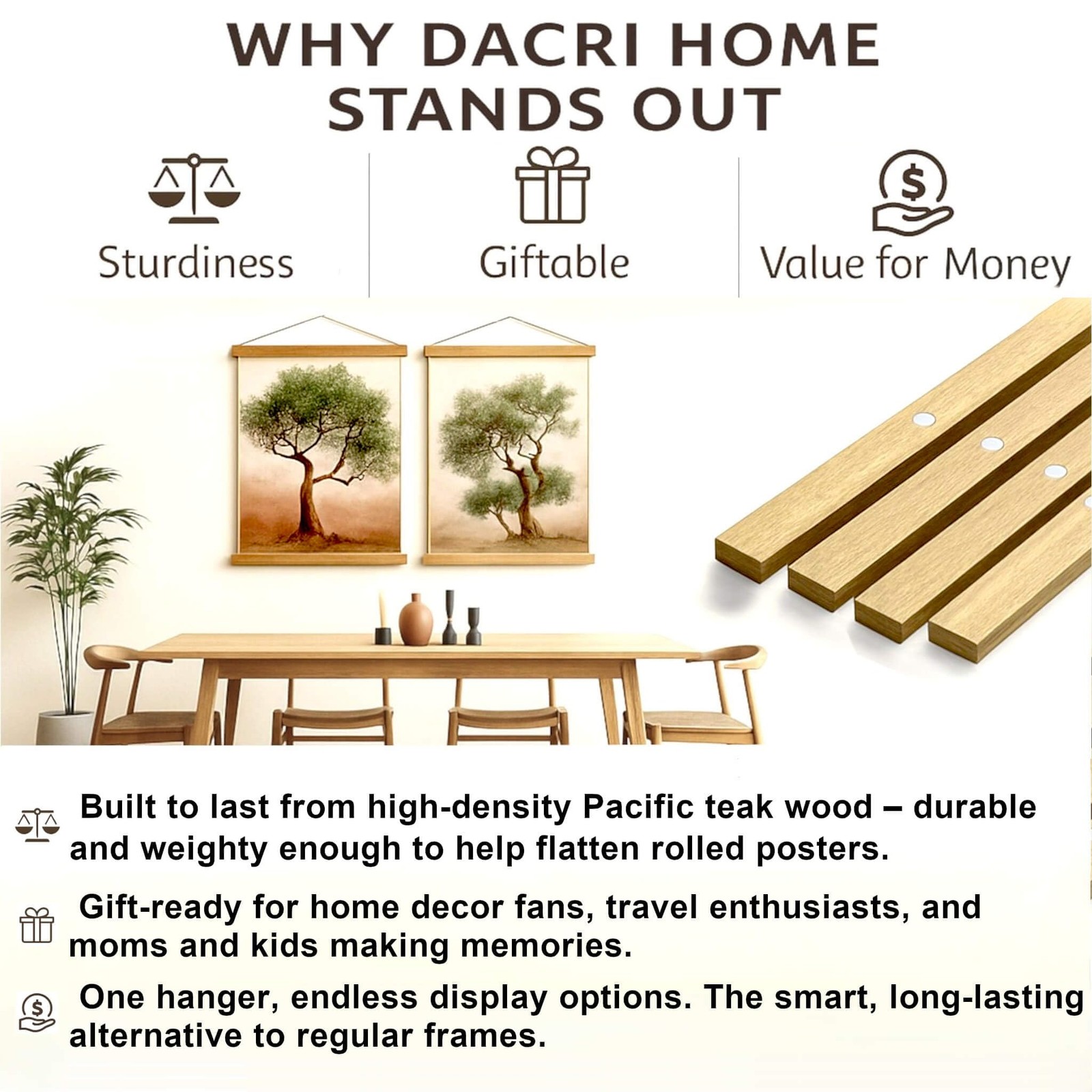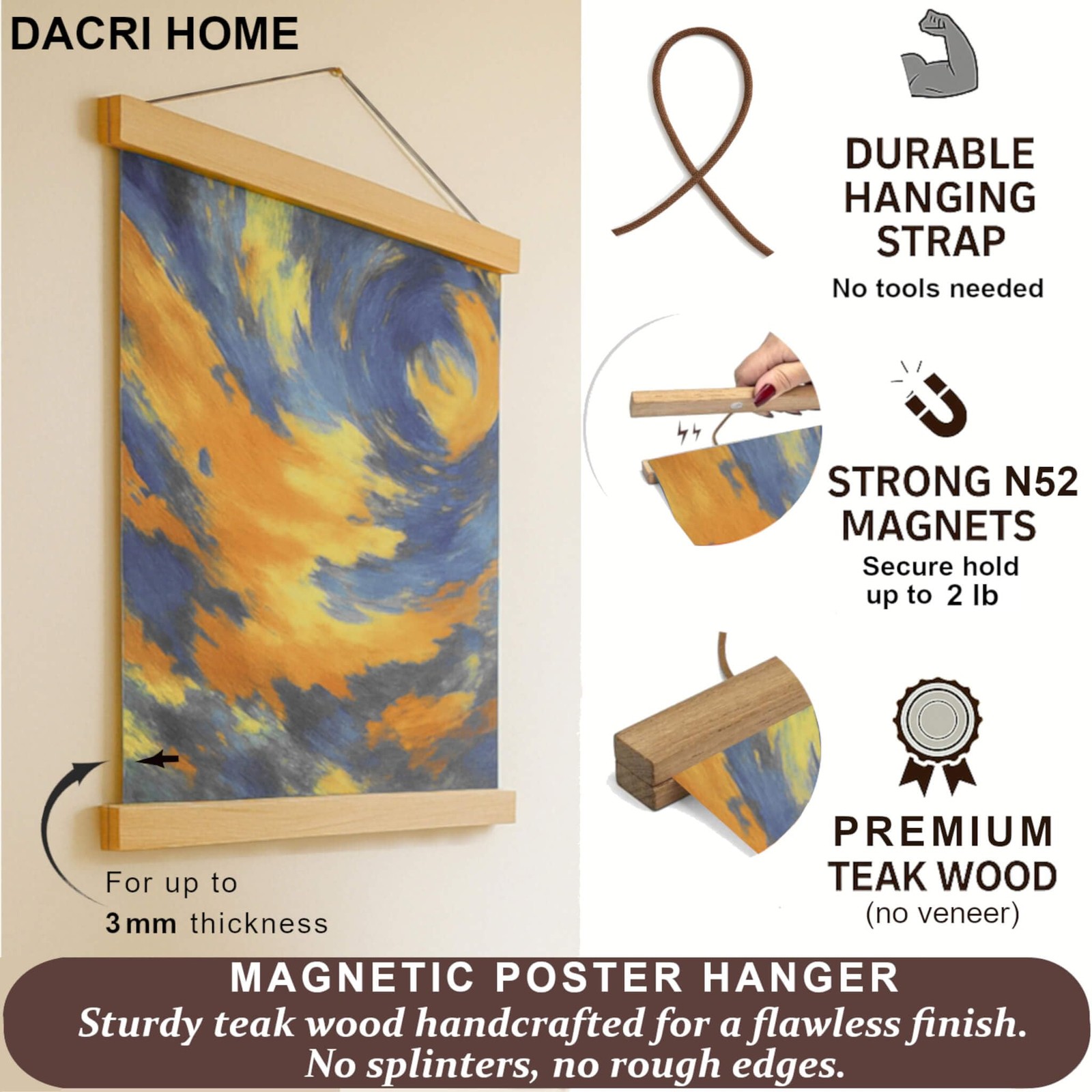 38 Magnetic Poster Hanger Frame - Sturdy Teak Wood Poster Frame, Strong Magn...