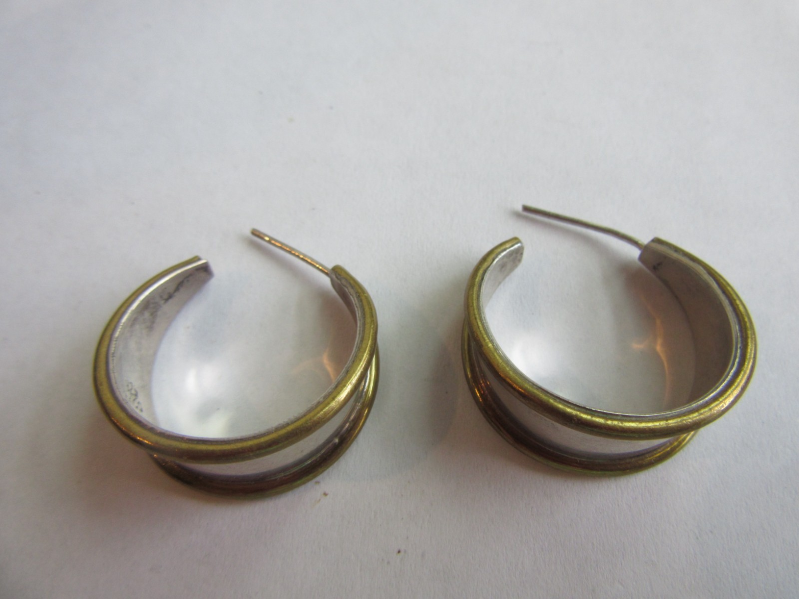 как выглядит Mexico 925 silver and brass hoop pierced earrings signed TH-165 фото