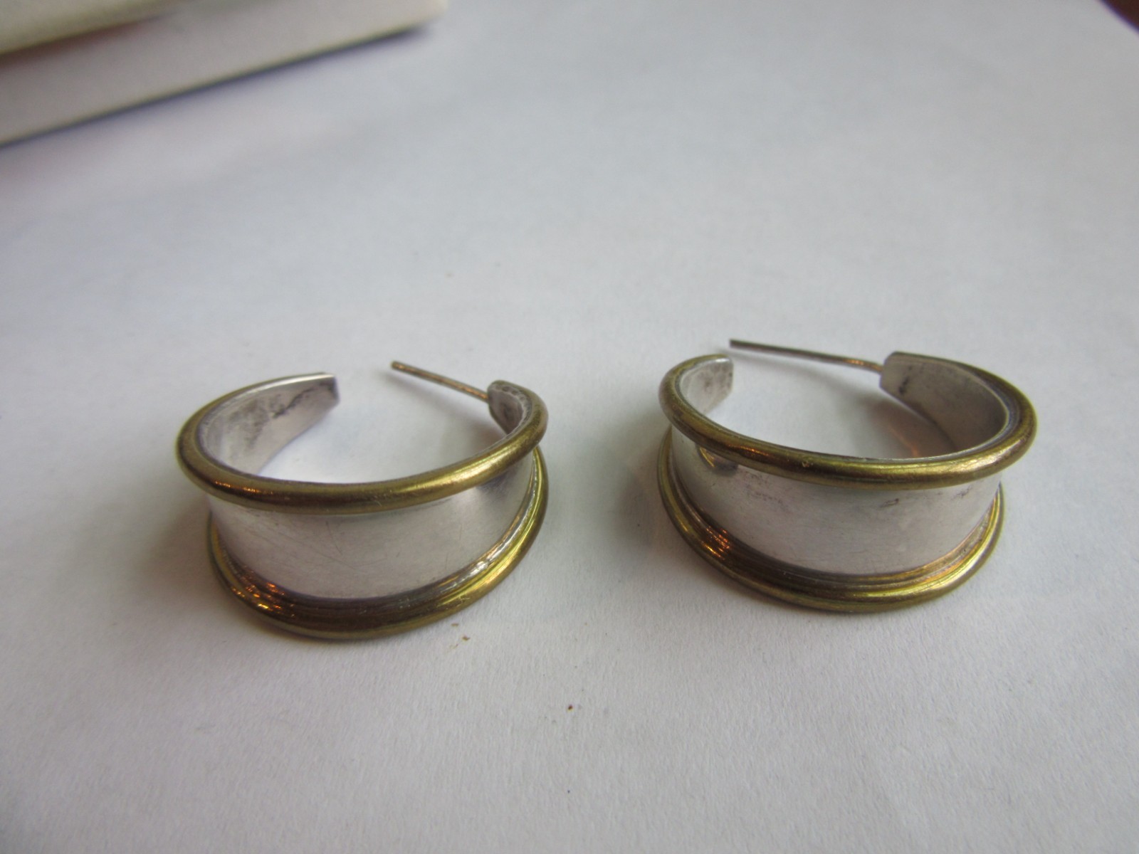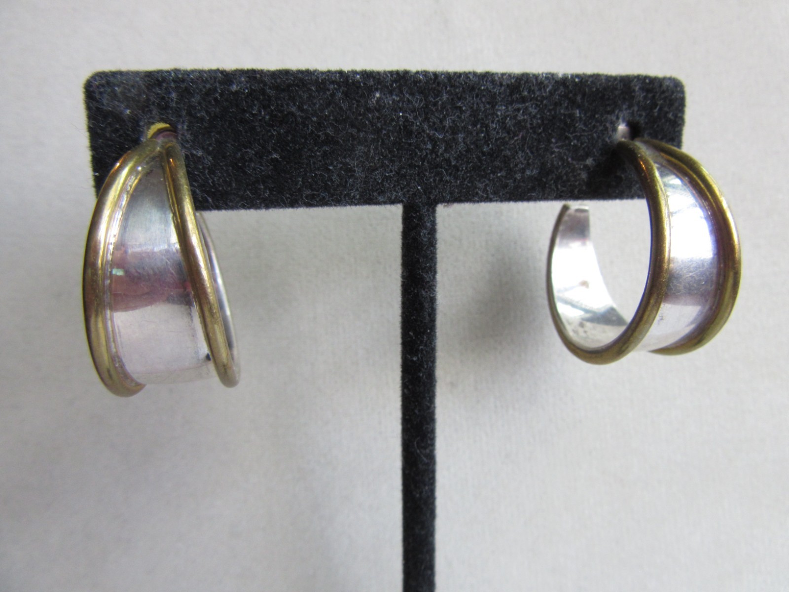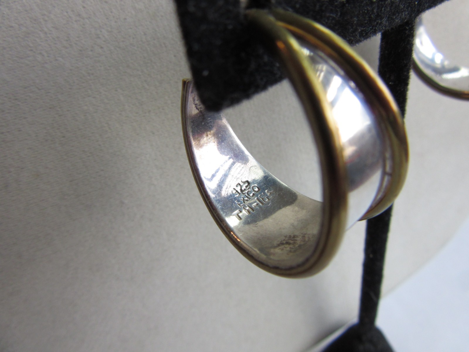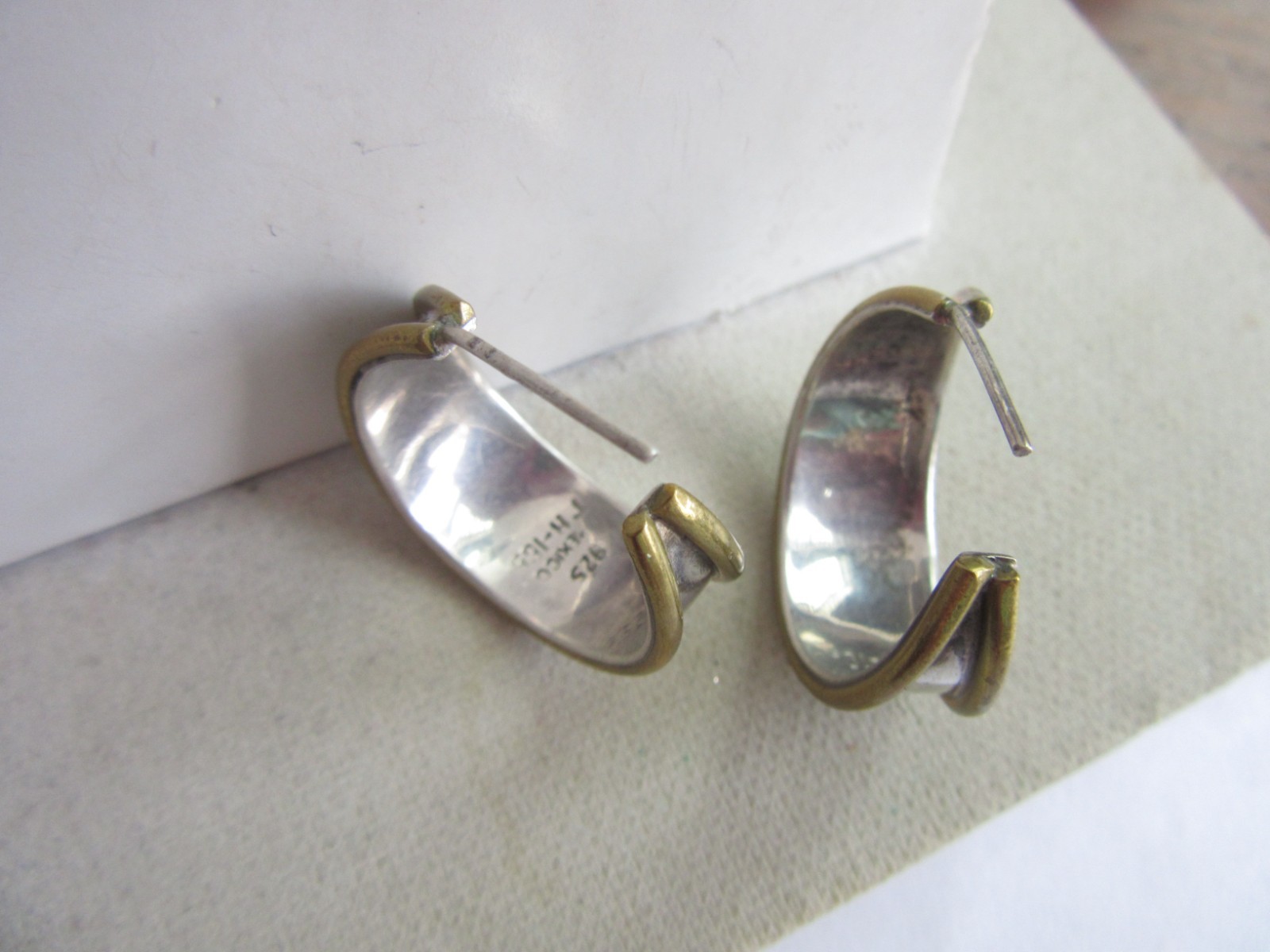 Mexico 925 silver and brass hoop pierced earrings signed TH-165