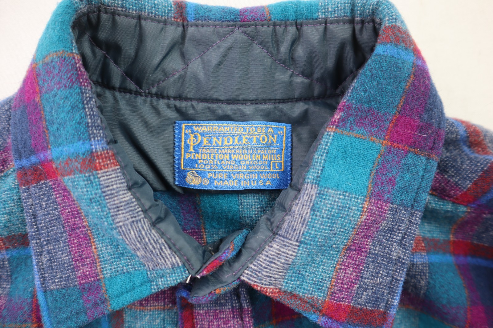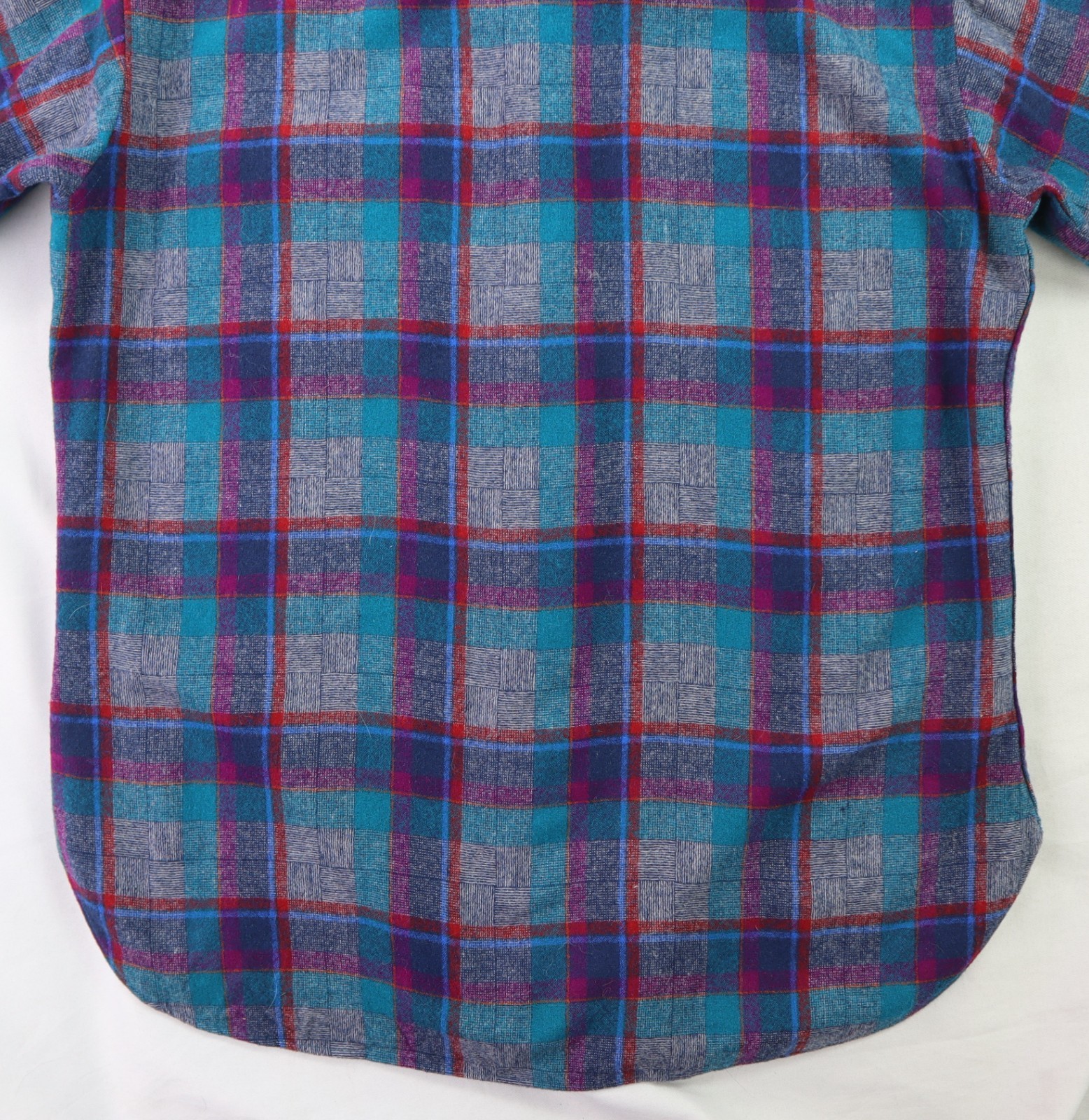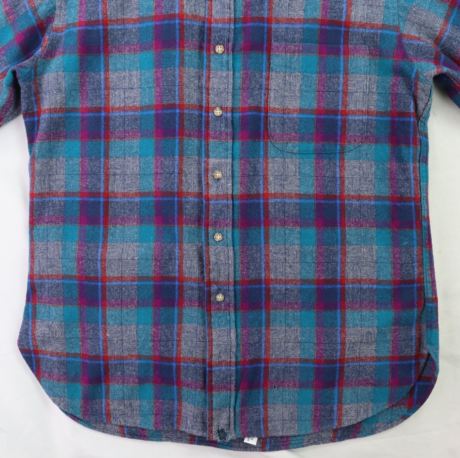 Vintage 70s PENDLETON USA Men s M Teal Blue Plaid Wool Button Up Lodge Shirt