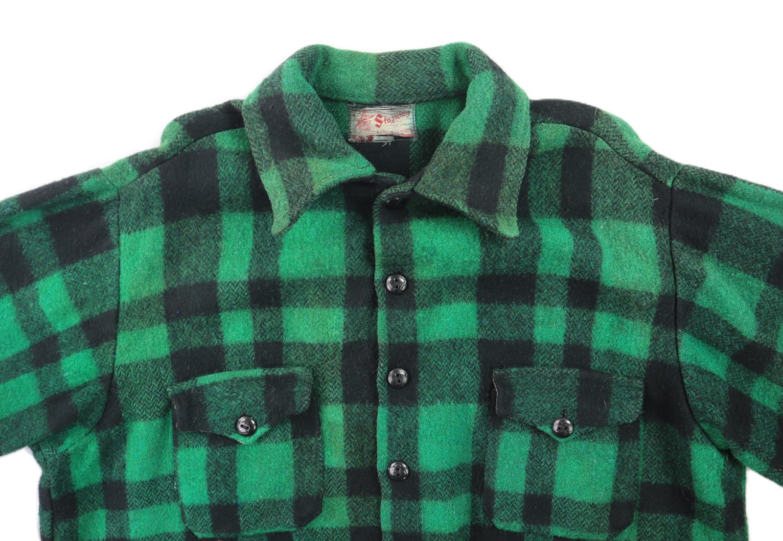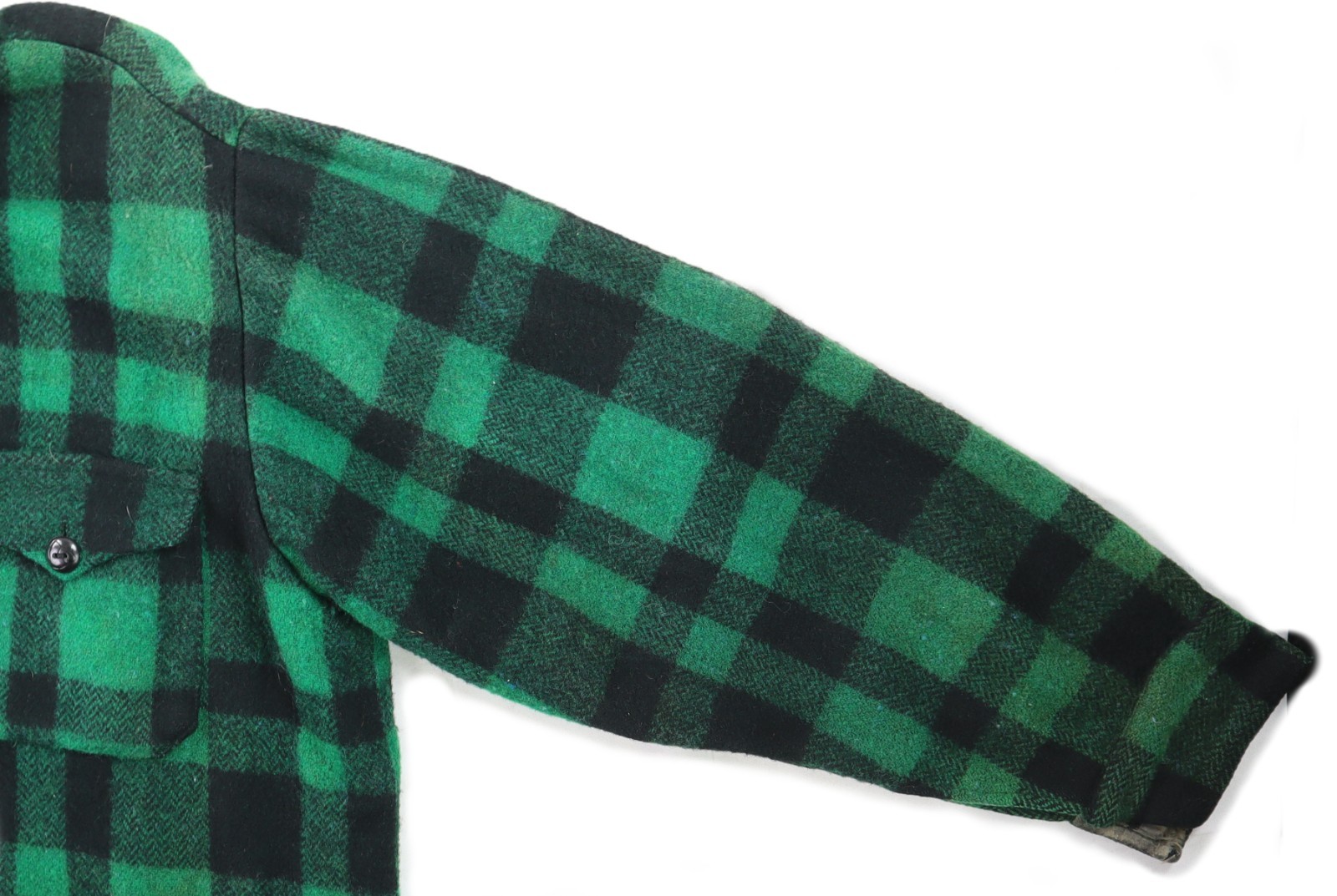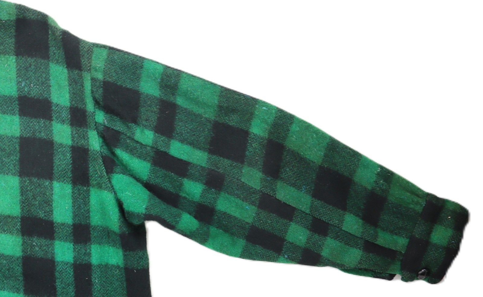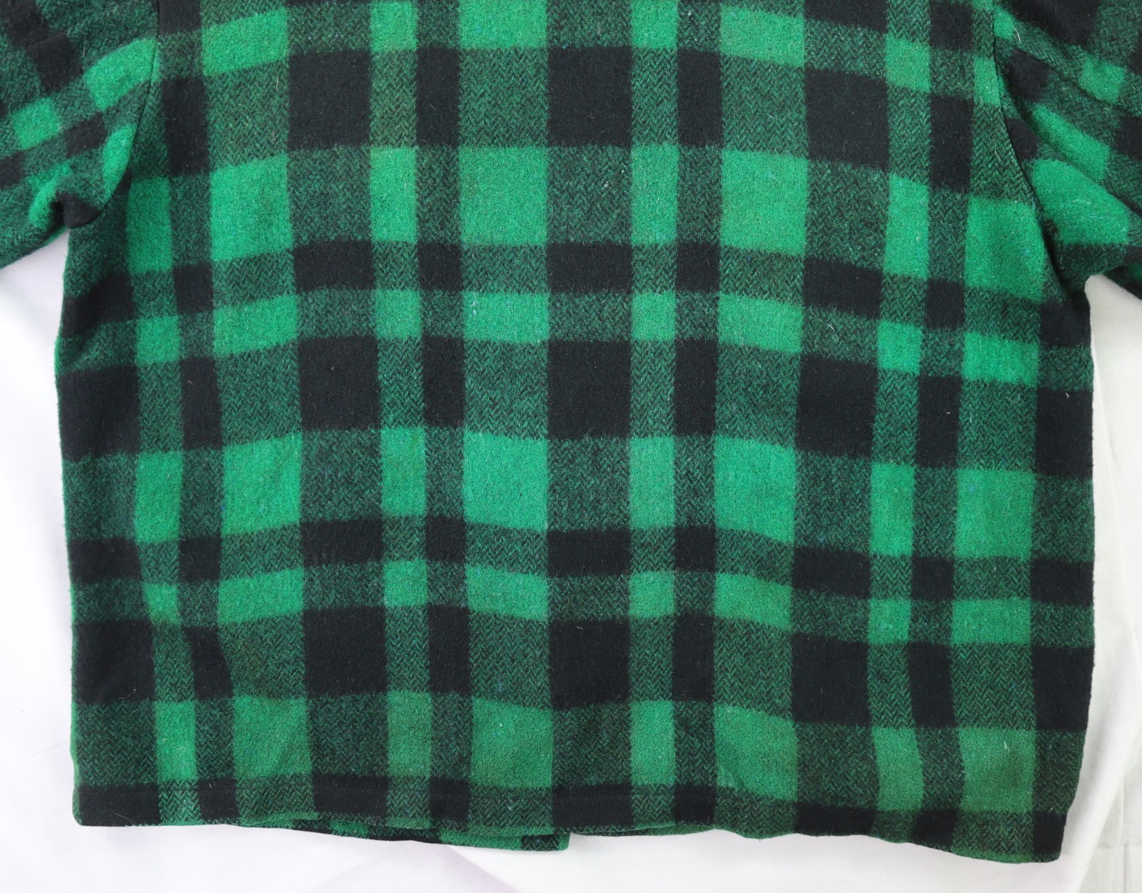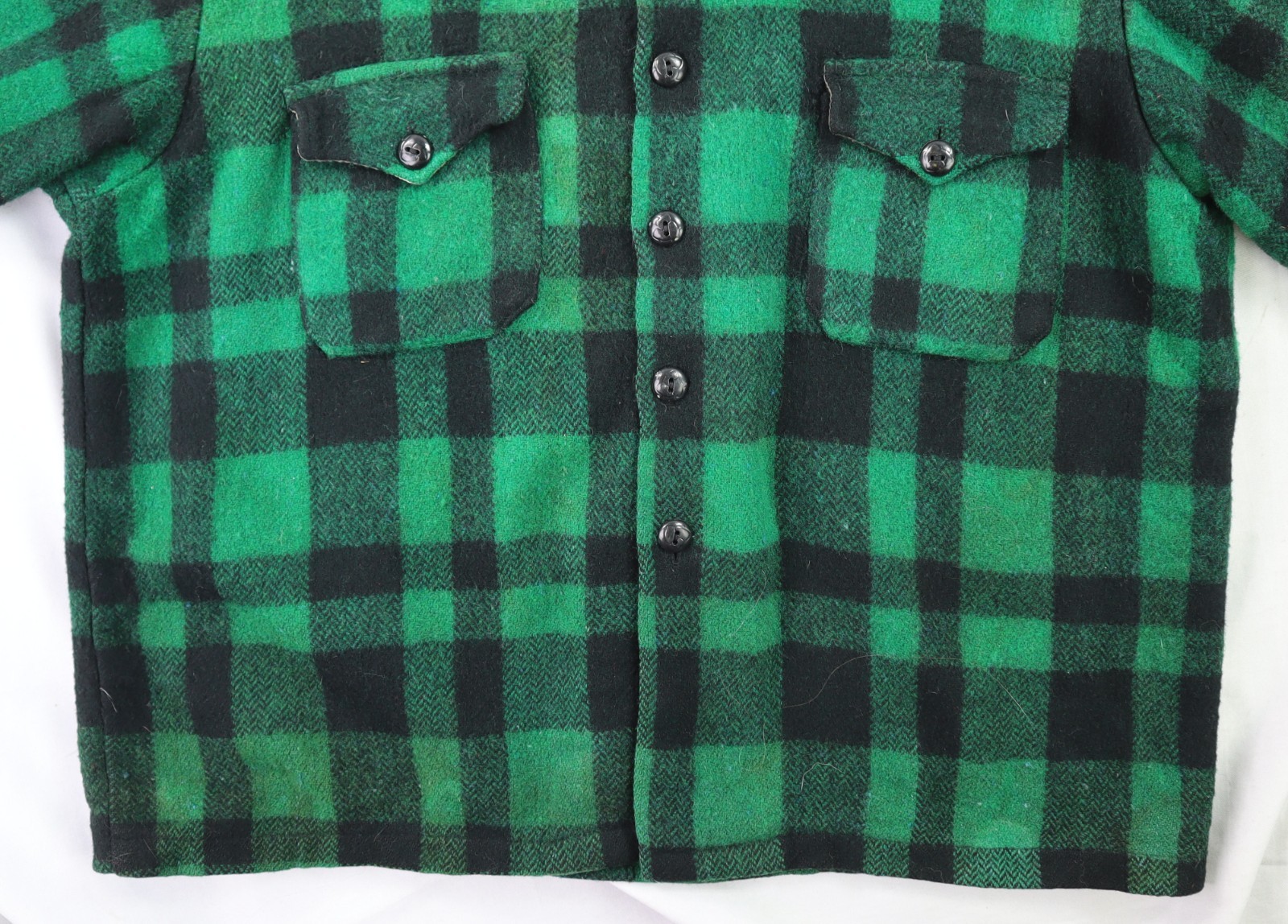Vintage 50s 60s US Mens L Canada Green Buffalo Plaid Wool Button Up Shirt Jacket