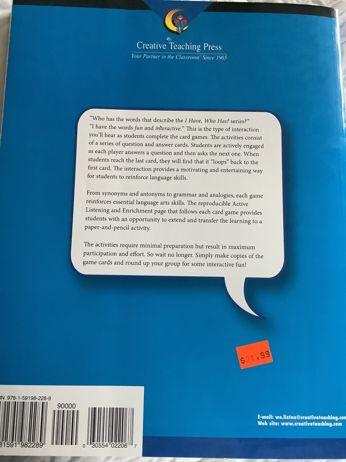 Book Title: I Have, Who Has? Language Arts, Grades 3-4 : 38 Interactive Card Games