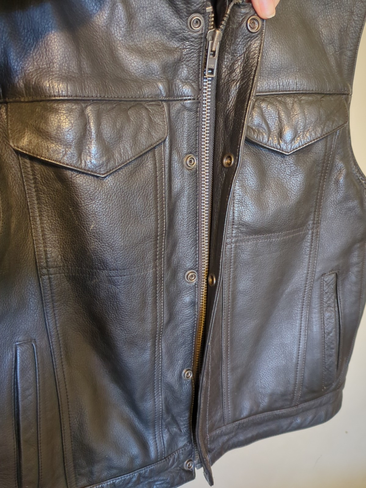 Highway 21 Black Leather Motorcycle Full Zip Vest Men's L Cotton Lined