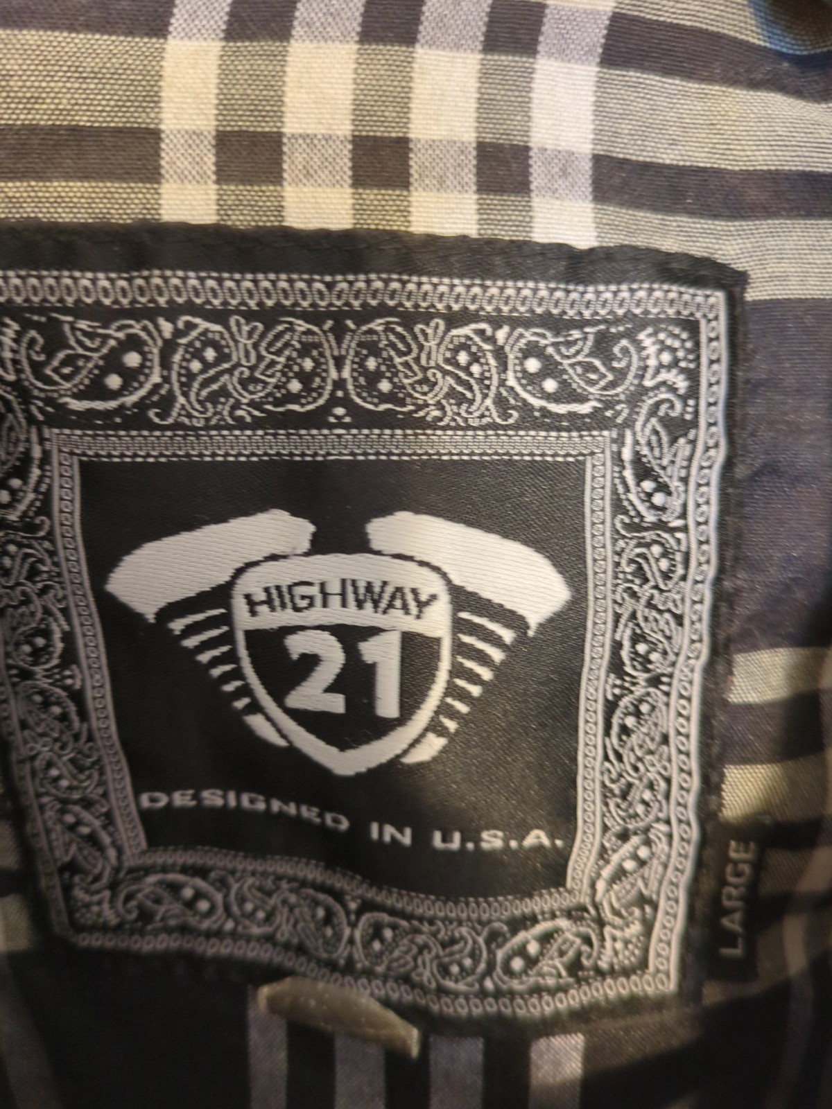 как выглядит Highway 21 Black Leather Motorcycle Full Zip Vest Mens L Cotton Lined фото