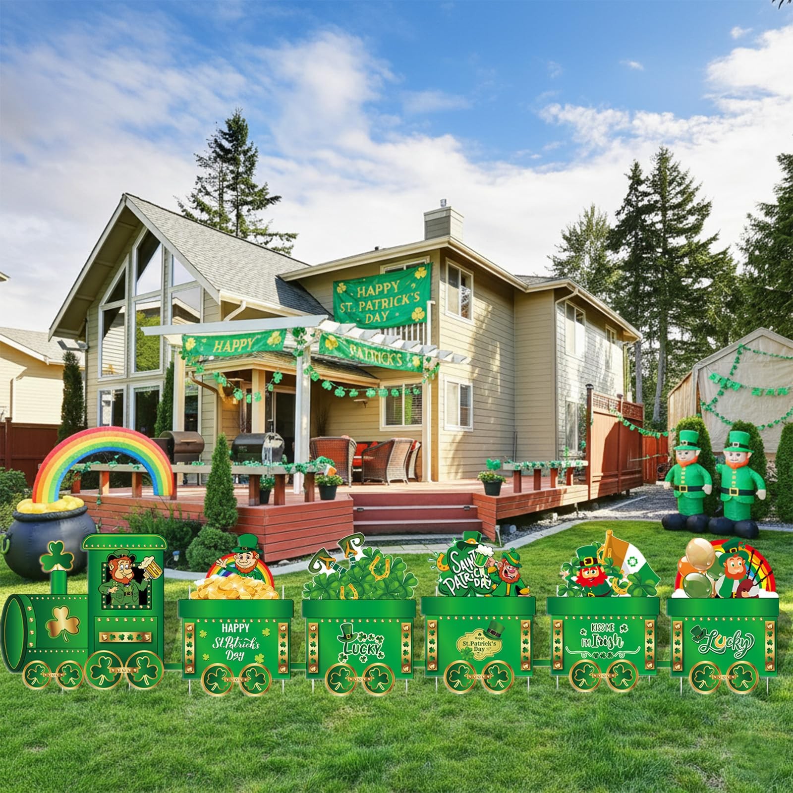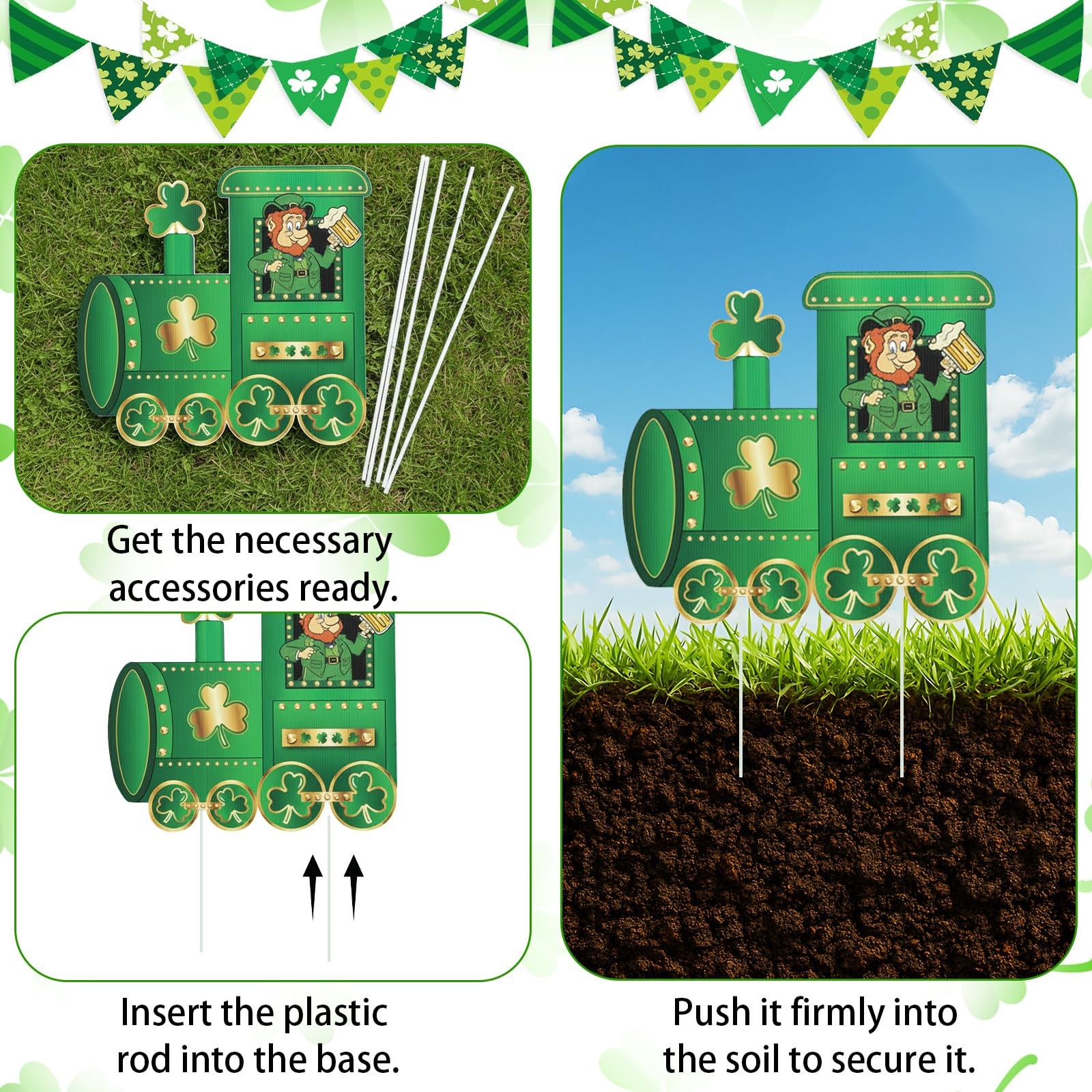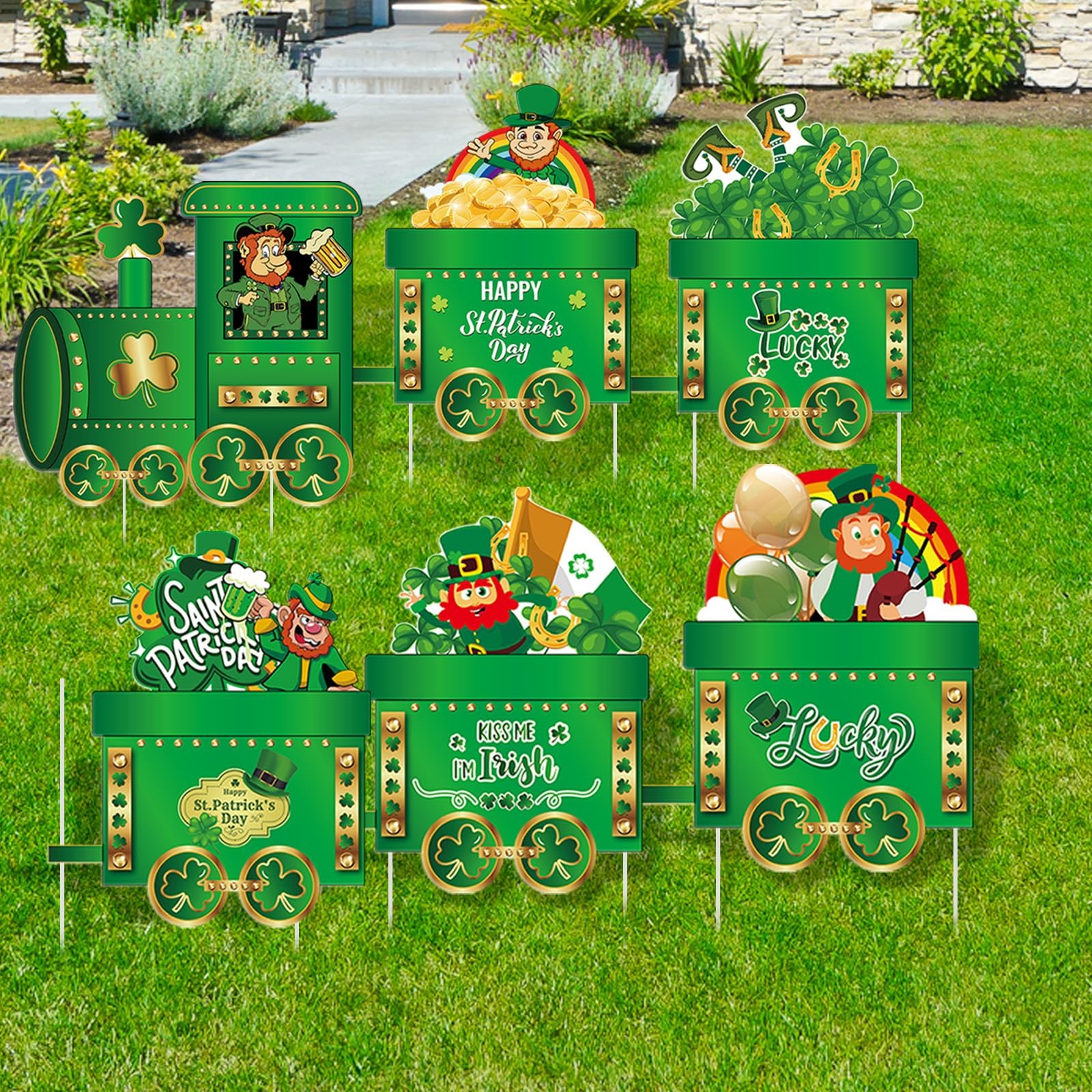 6 PCS St. Patrick's Day Yard Signs Decorations Train Kit Waterproof Outdoor Iris