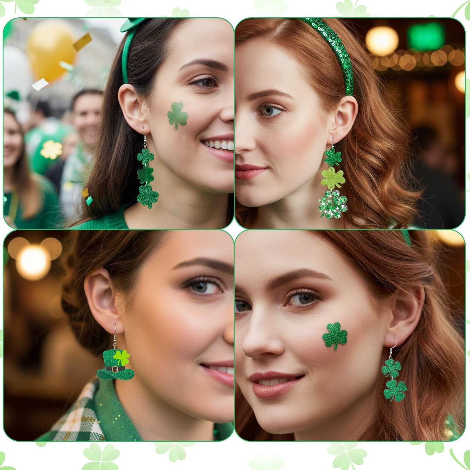 как выглядит St. Patricks Day Earrings for Women-9 Pair Set of Irish Regular, green фото