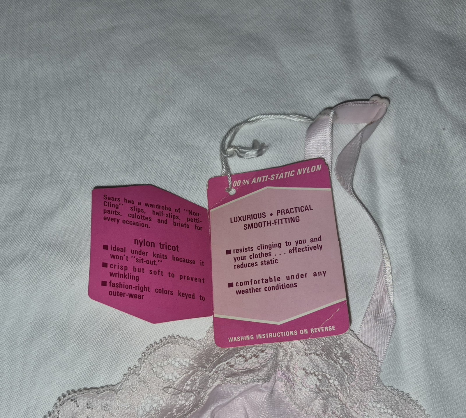 как выглядит Vintage Sears Slip Womens 36 Short Pink Lace Non Cling 100 Nylon Tricot NWT фото